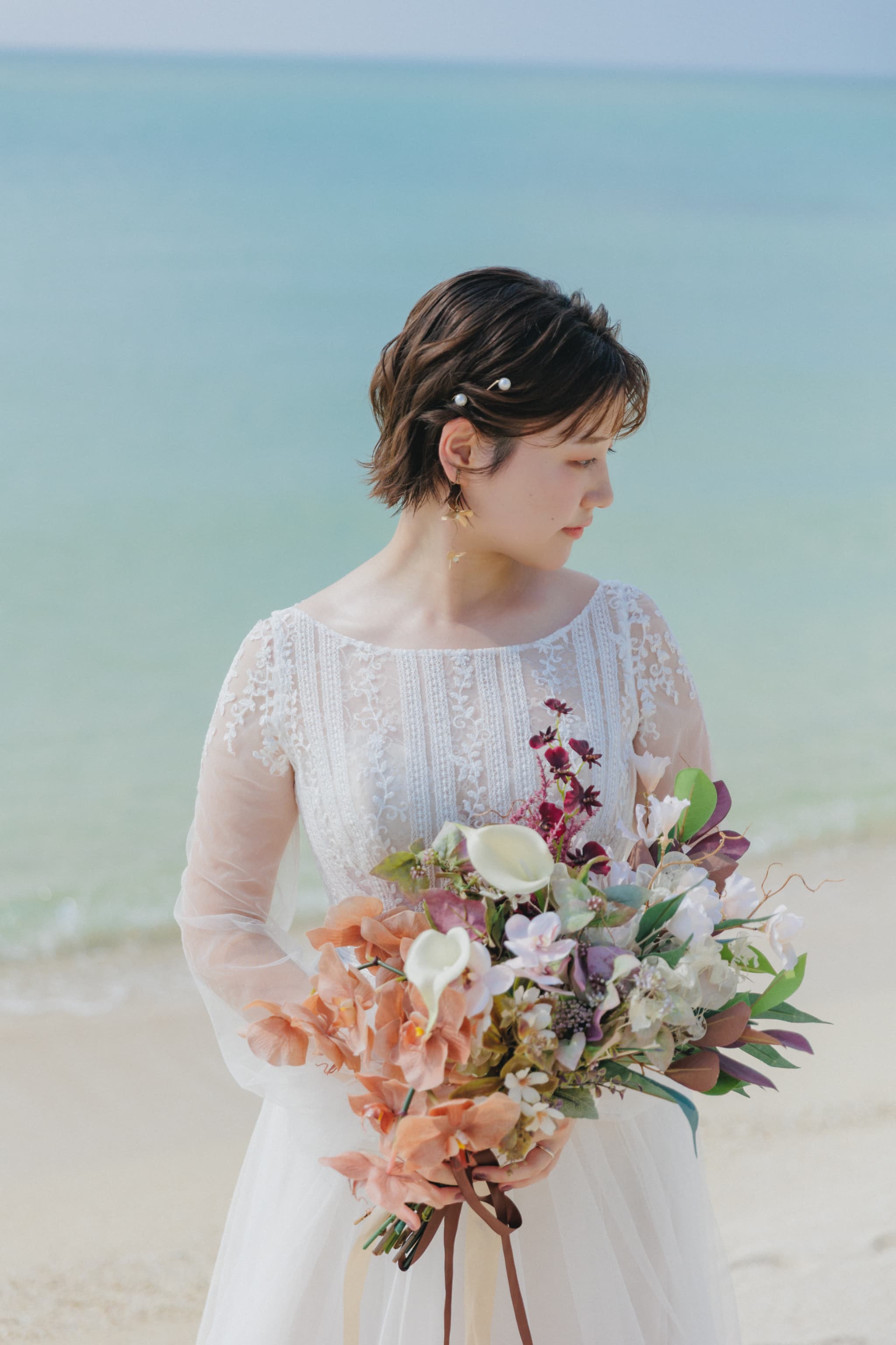 みなさまこんにちは! ヘアメイクの舟橋です。 今年最後の投稿は、先日沖縄店で撮影されたお客様のヘアメイクのご紹介です^^ [334719-86.jpg][334719-81.jpg] 青のインナーカラーが入っているおしゃれな新婦様♪ インナーカラーを生かして色を分けて、キレイめなタイト編み下ろしを作りました! 前髪はシースルー、後ろの毛先を出してカチモリにすることでおしゃれな新婦様に合わせました^^ メイクも髪色に合わせてナチュラルピンクに仕上げました♡ [334719-107.jpg][334719-138.jpg][334719-28.jpg] アイテムも持ってきてくださり、沖縄での撮影をめいっぱい楽しんでくださったおふたり! このようにお好きな雰囲気に合わせて楽しい撮影も、クールに大人っぽく撮影することもできます^^ 2026年も沢山おふたりの大切な一日のお手伝いができますように、、、♡