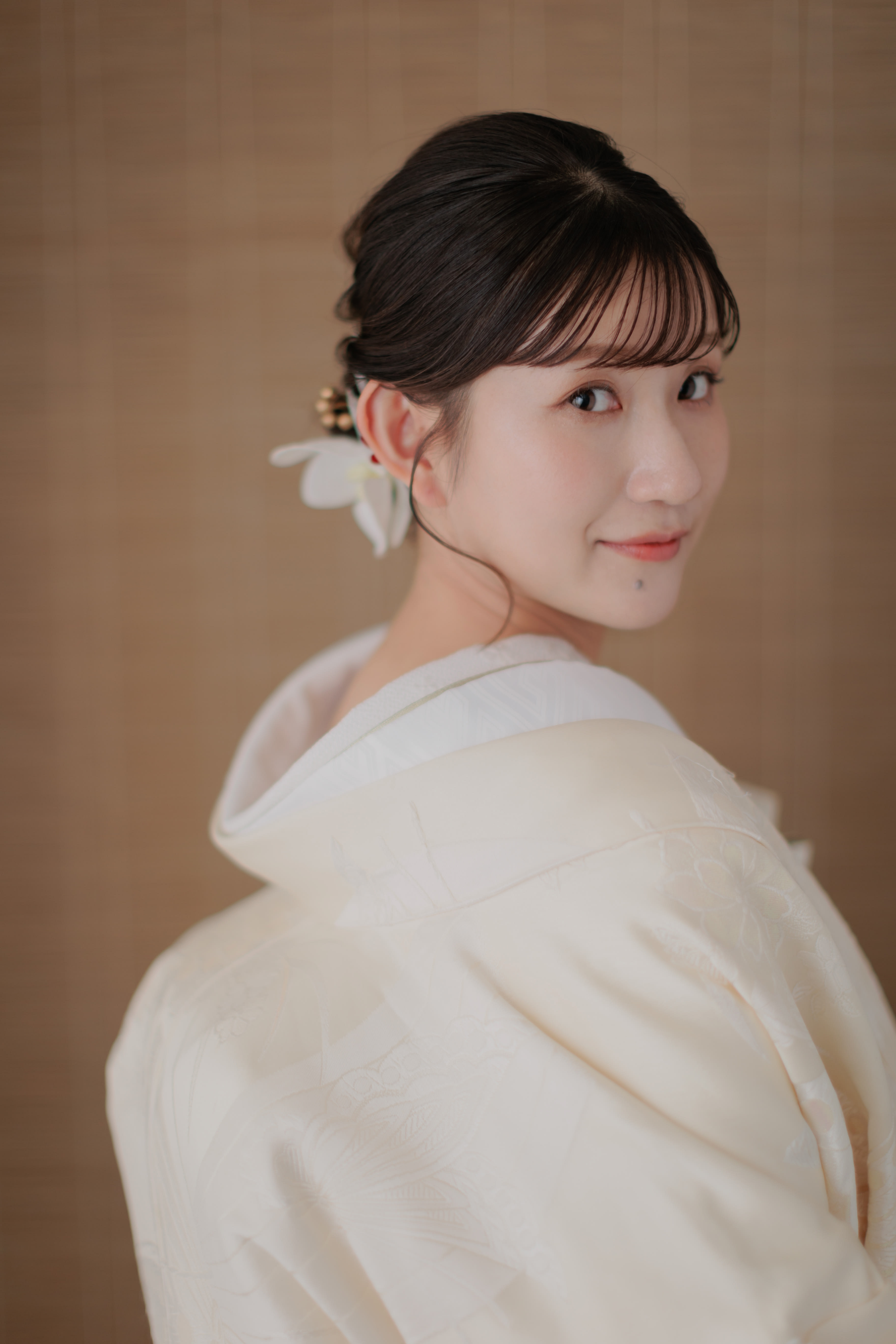 一人ひとりの雰囲気に合わせて、その人らしさを大切にしたナチュラルだけど華やかさもあるヘアメイク、衣装や撮影場所とのトータルバランスも大事にしています。