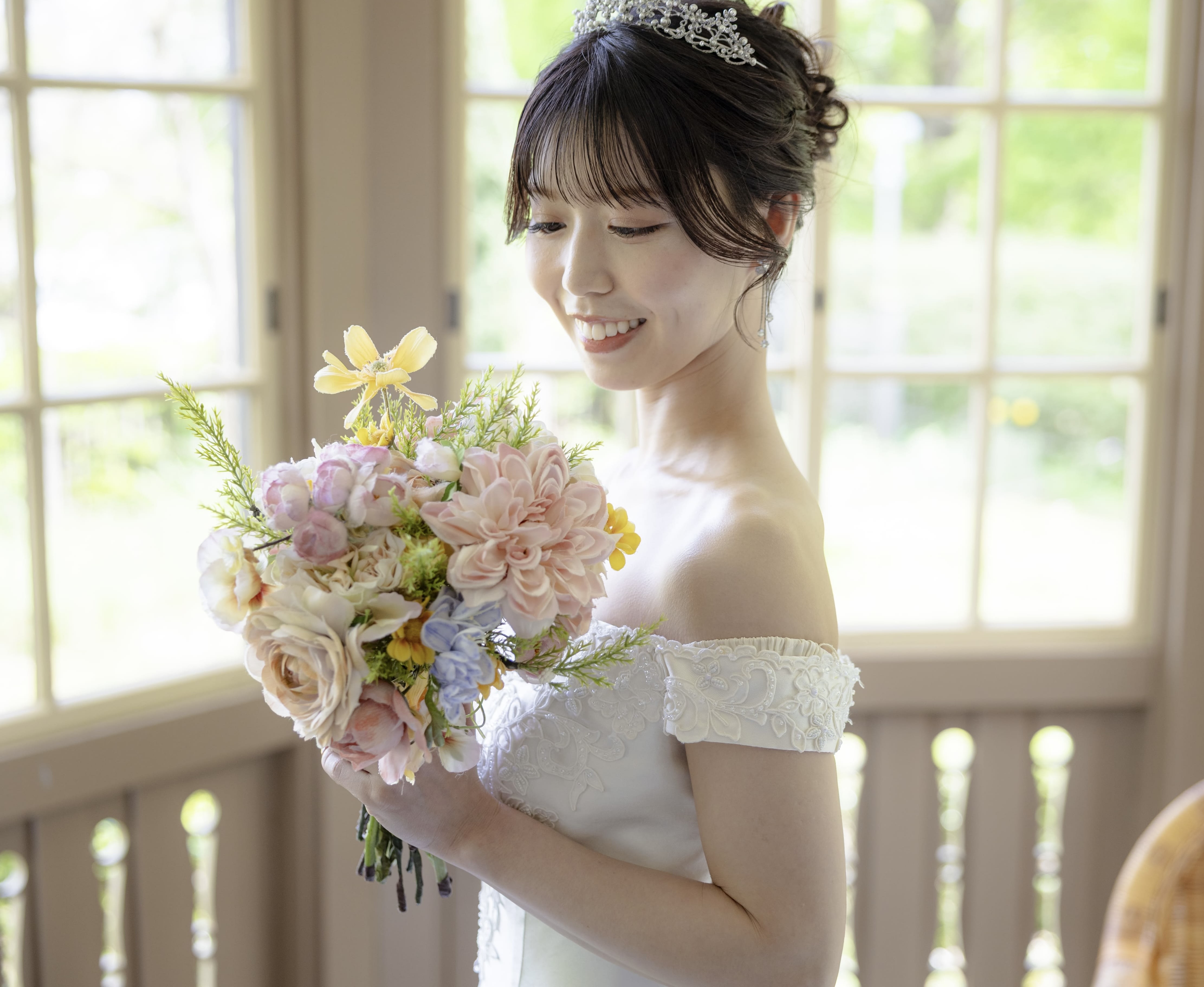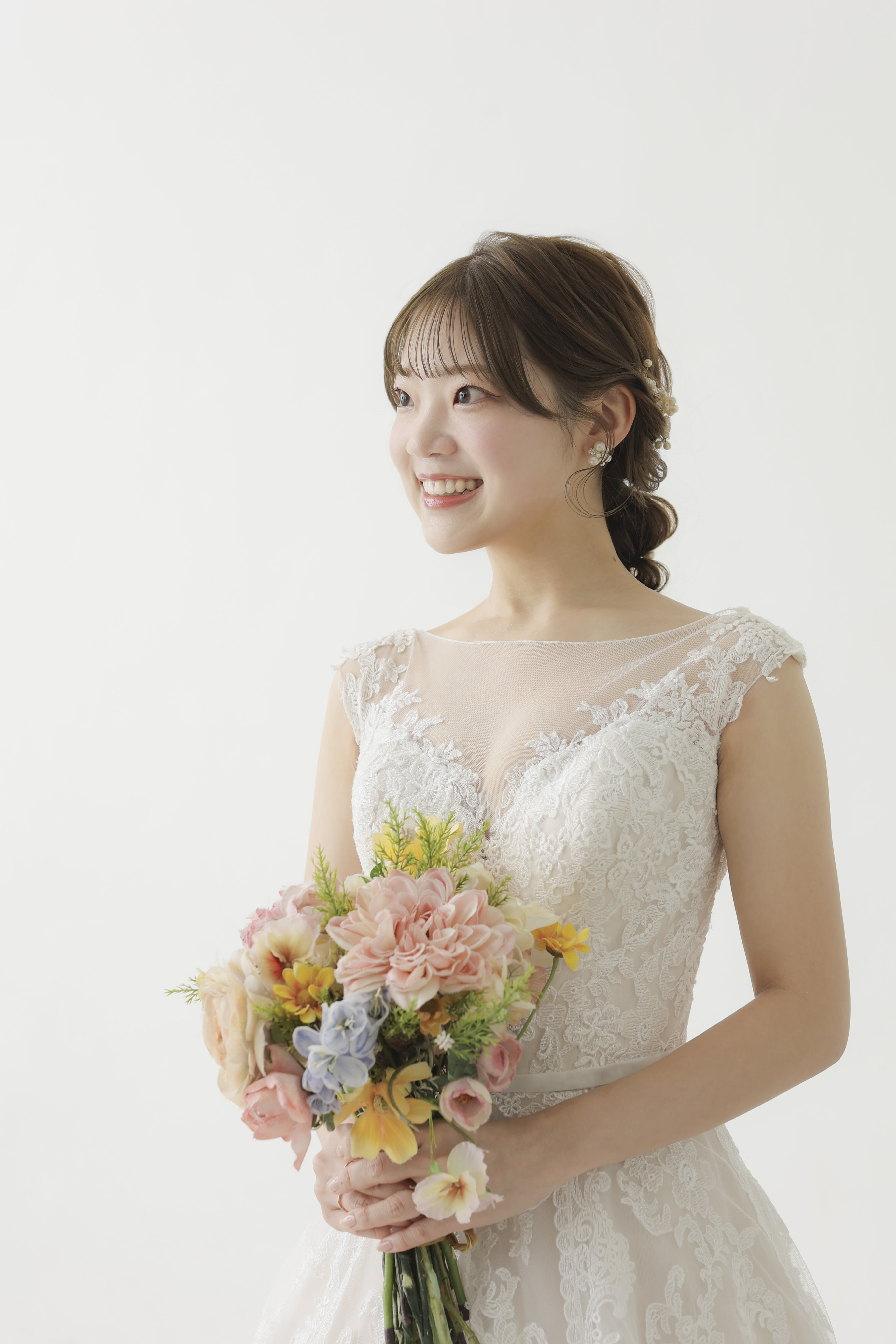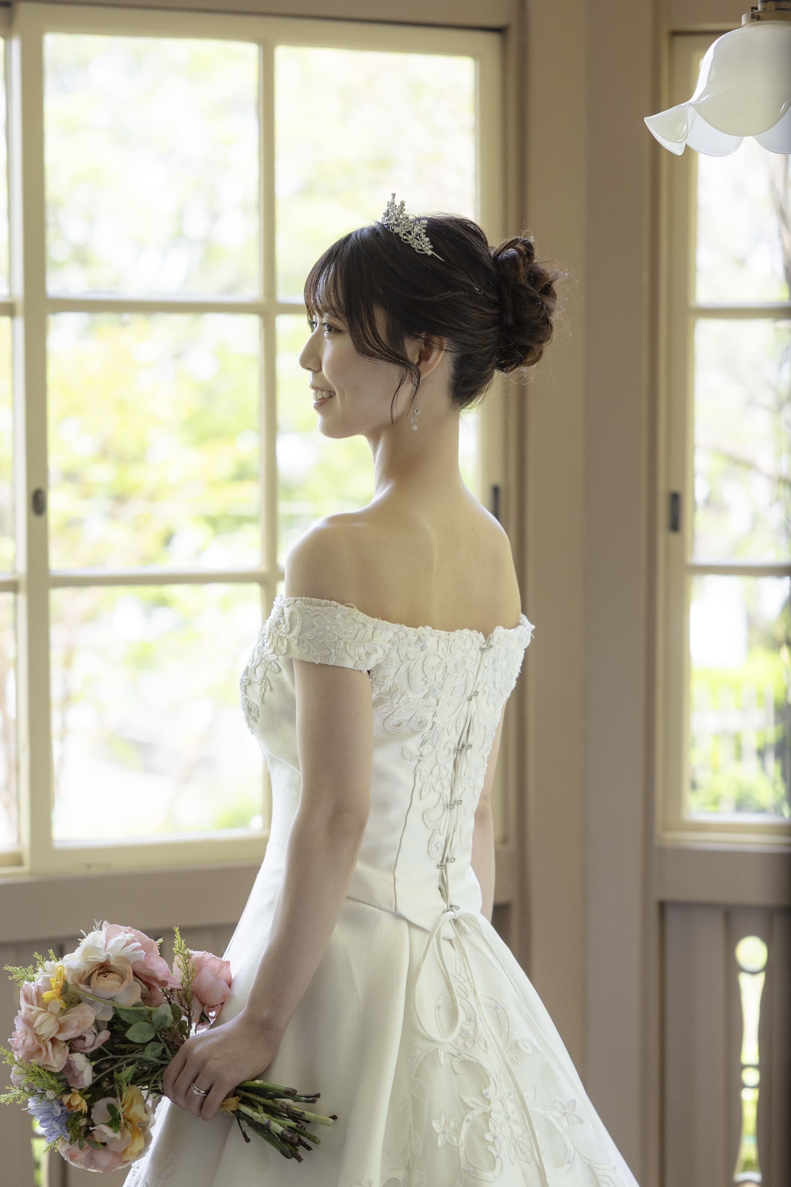 みなさん、こんにちは! スタジオアクア横浜店ヘアメイクの川邉です! 今回は新作カラードレス『Rouge Tissé/ルージュ・ティセ」についてご紹介させていただきます⋆˙⟡ [251222-39.jpg] クラシカルなツイードを、現代的に仕立てたラグジュアリードレス。 深みのあるレッド、ブラック、グリーンの織りが、光の角度で上品に艶めくツイード生地を使用。 ボリュームのあるパフスリーブと、すっきりと開いたデコルテラインが調和し、知的で華やかな印象を与えます。 秋冬シーズンの挙式やレストランウェディング、フォトウェディングにも映える一着です。 [251222-123.jpg] [251222-107.jpg] メイクはモカ系のアイシャドウにレッドブラウンのリップで冬の大人っぽい感じにしました𝜗𝜚 [251222-13.jpg] ヘアスタイルはゆるっと編み下ろしにブラウンリボンをつけて落ち着いた雰囲気に。 [251222-83.jpg] とーーってもかわいい衣装なのでぜひ花嫁さんたち着てみてください ♡ [251222-78.jpg] いかがでしたか? 衣装のコーディネートやヘアメイクはなりたいイメージ、お写真の雰囲気などに合わせて似合うスタイルをご提案させて頂きます♡ \ ホームページのギャラリーも随時更新しています♫ / ご指名も承っておりますので、ぜひご覧ください! Hair&Make:Miyu Kawanabe Photographer : Ryo Kodama 【 撮影までの流れ 】 〈 洋装 〉ご来店回数 3 回(オンライン相談会の場合は2回) 撮影相談会→ 衣装合わせ (撮影日の2週間~1ヶ月前頃)→ 撮影当日 → 商品の発送 〈 和装 〉ご来店回数 2 回(オンライン相談会の場合は1回) 撮影相談会 → 撮影当日 (衣装選びは撮影当日に行います) → 商品の発送 当店専属プランナーがお二人に合ったプランをご提案させていただきますので一緒に作っていきましょう! イメージがなくても全然大丈夫です! お気軽にご相談ください! 皆様のお問い合わせ、心よりお待ち申し上げます。