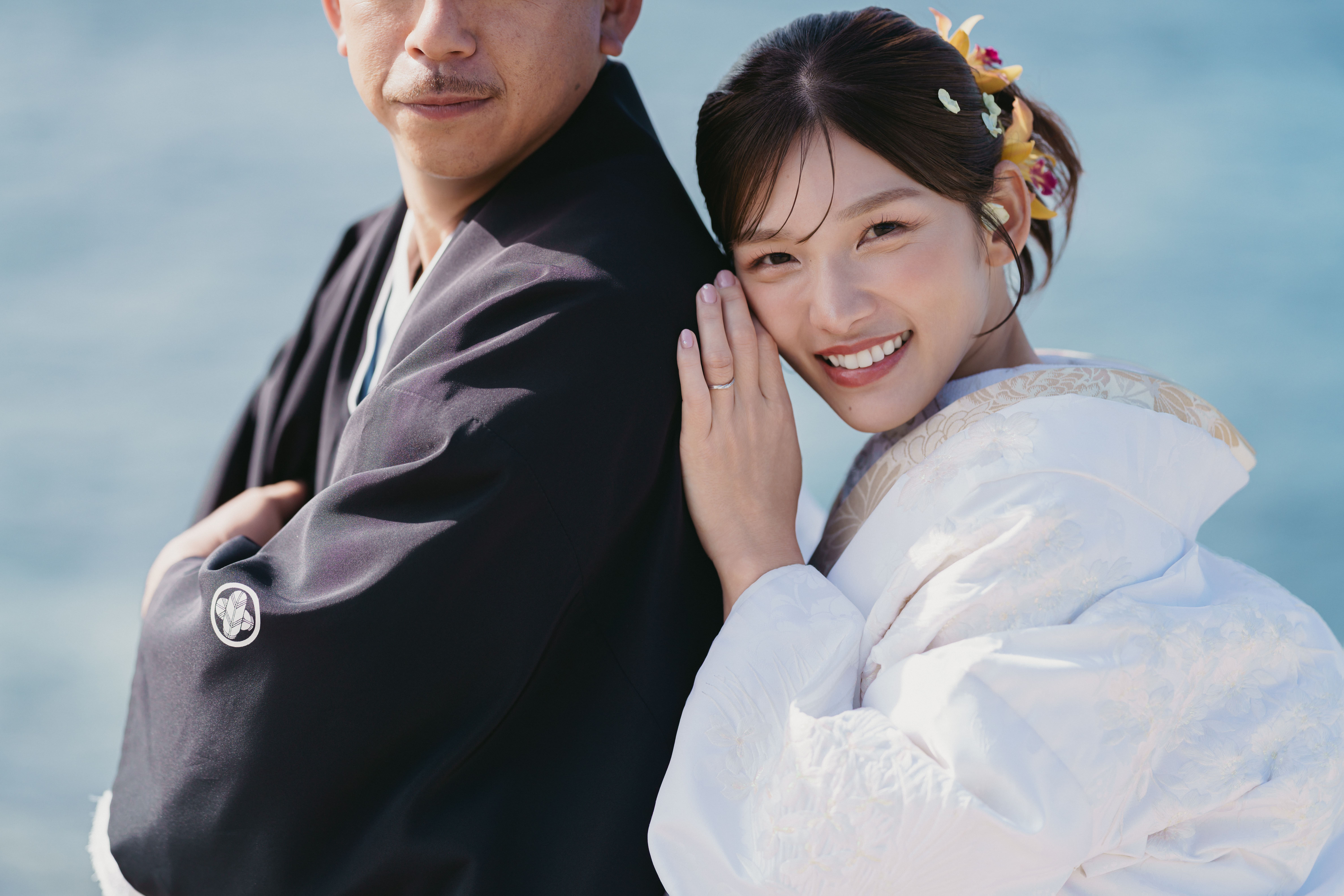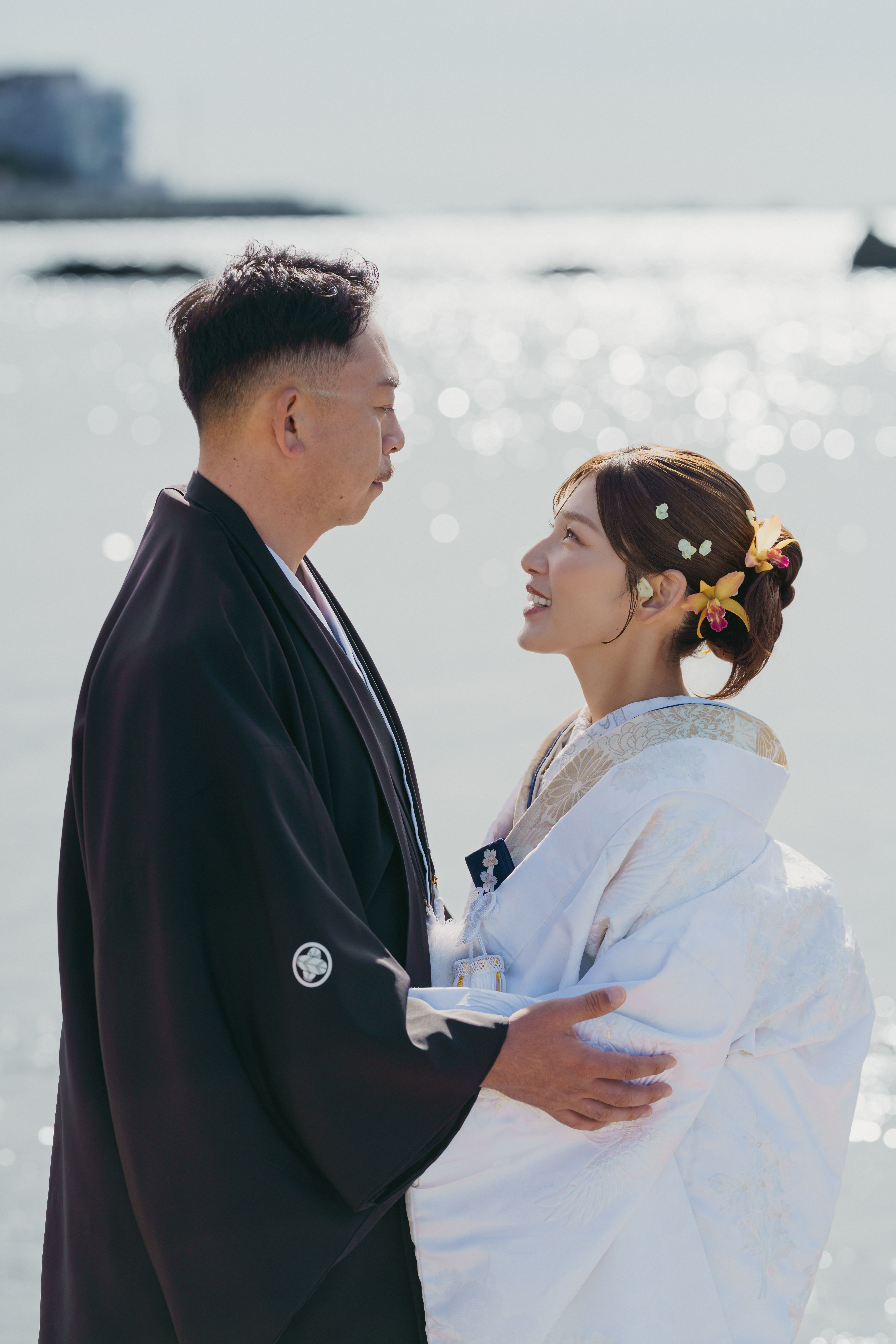 みなさん、こんにちは! スタジオアクア横浜店ヘアメイクの川邉です! 今回は先日ご指名いただいたお客様の思い出の場所にお邪魔してきました。 ロケ地は森戸海岸と祖父母のご自宅でした! [352398-137.jpg] ️[352398-36.jpg] この日はとっても快晴で海がキラキラ輝いていました★ 白無垢が青い海に映えていました! [352398-109.jpg] お次に新婦様の祖父母のご自宅へ挨拶しにいきました! [352398-210.jpg] 写真が大好きなお祖母様。 たくさんの思い出に囲まれて撮影しました。 [352398-427.jpg][352398-429.jpg] ヘアスタイルはタイトなカチモリスタイルに生花のお花をつけました♡ シンプルだけど一癖加えたヘアスタイルに生花をつけて華やかさUP とっても可愛かったです! [352398-282.jpg] 「紅差しの儀」 これからの幸せを願うという深い愛情と古くから魔除けの意味を持つ紅によって「災いが降りかからないように」という願いが込められています。 [352398-281.jpg] お祖母様からの「ありがとうね。」と笑顔で言っている姿に私たちまで感動しました。 [352398-408.jpg] [352398-492.jpg] 最後はお庭で笑顔でピース!! 笑顔の絶えない皆様で本当に楽しかったです。 カメラマン・ヘアメイクどちらも指名をして頂きありがとうございました! 末長くお幸せに♡ いかがでしたか? 衣装のコーディネートやヘアメイクはなりたいイメージ、お写真の雰囲気などに合わせて似合うスタイルをご提案させて頂きます♡ \ ホームページのギャラリーも随時更新しています♫ / ご指名も承っておりますので、ぜひご覧ください! Hair&Make:Miyu Kawanabe Photographer : Minoru Ito 【 撮影までの流れ 】 〈 洋装 〉ご来店回数 3 回(オンライン相談会の場合は2回) 撮影相談会→ 衣装合わせ (撮影日の2週間~1ヶ月前頃)→ 撮影当日 → 商品の発送 〈 和装 〉ご来店回数 2 回(オンライン相談会の場合は1回) 撮影相談会 → 撮影当日 (衣装選びは撮影当日に行います) → 商品の発送 当店専属プランナーがお二人に合ったプランをご提案させていただきますので一緒に作っていきましょう! イメージがなくても全然大丈夫です! お気軽にご相談ください! 皆様のお問い合わせ、心よりお待ち申し上げます。