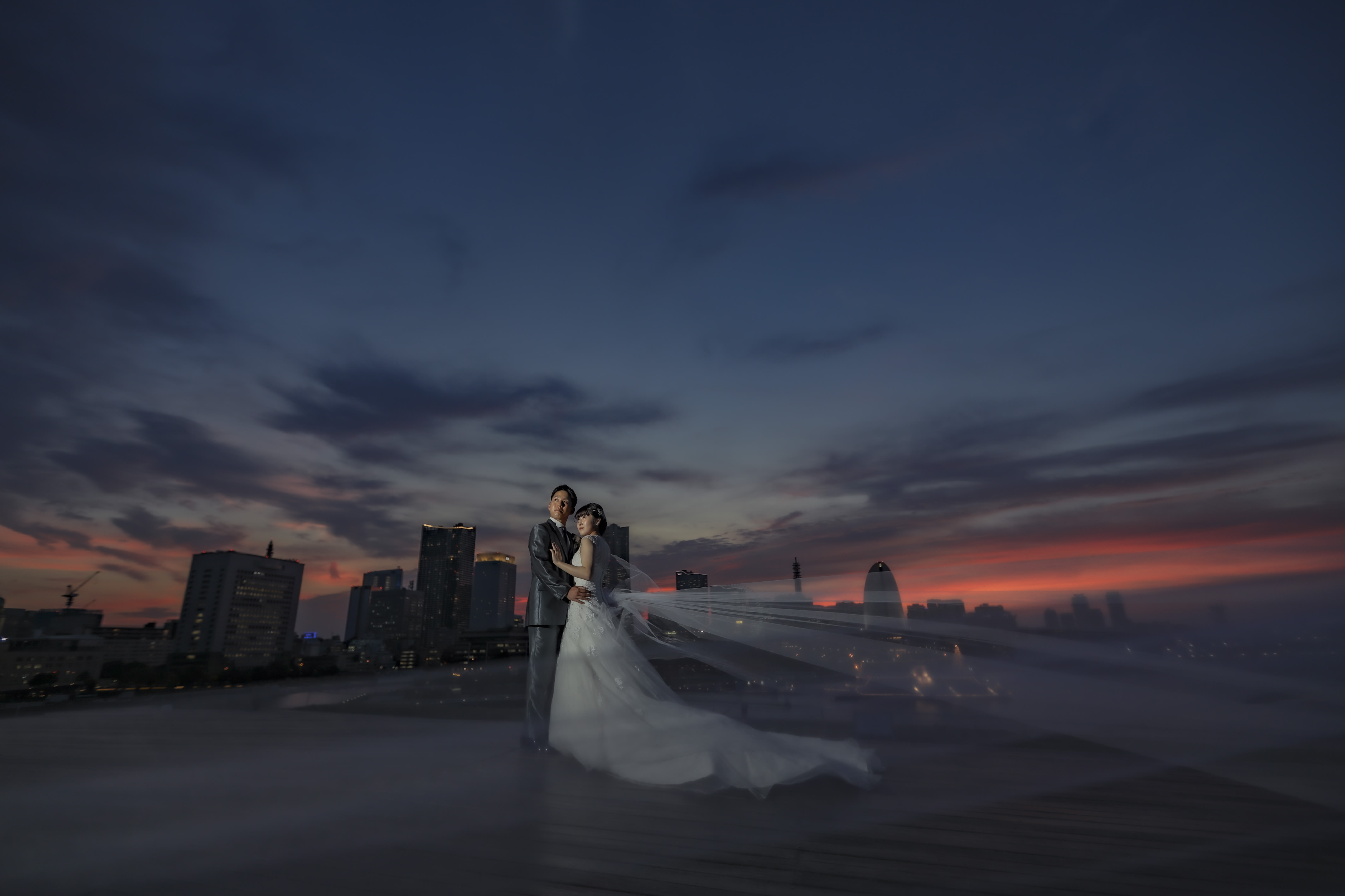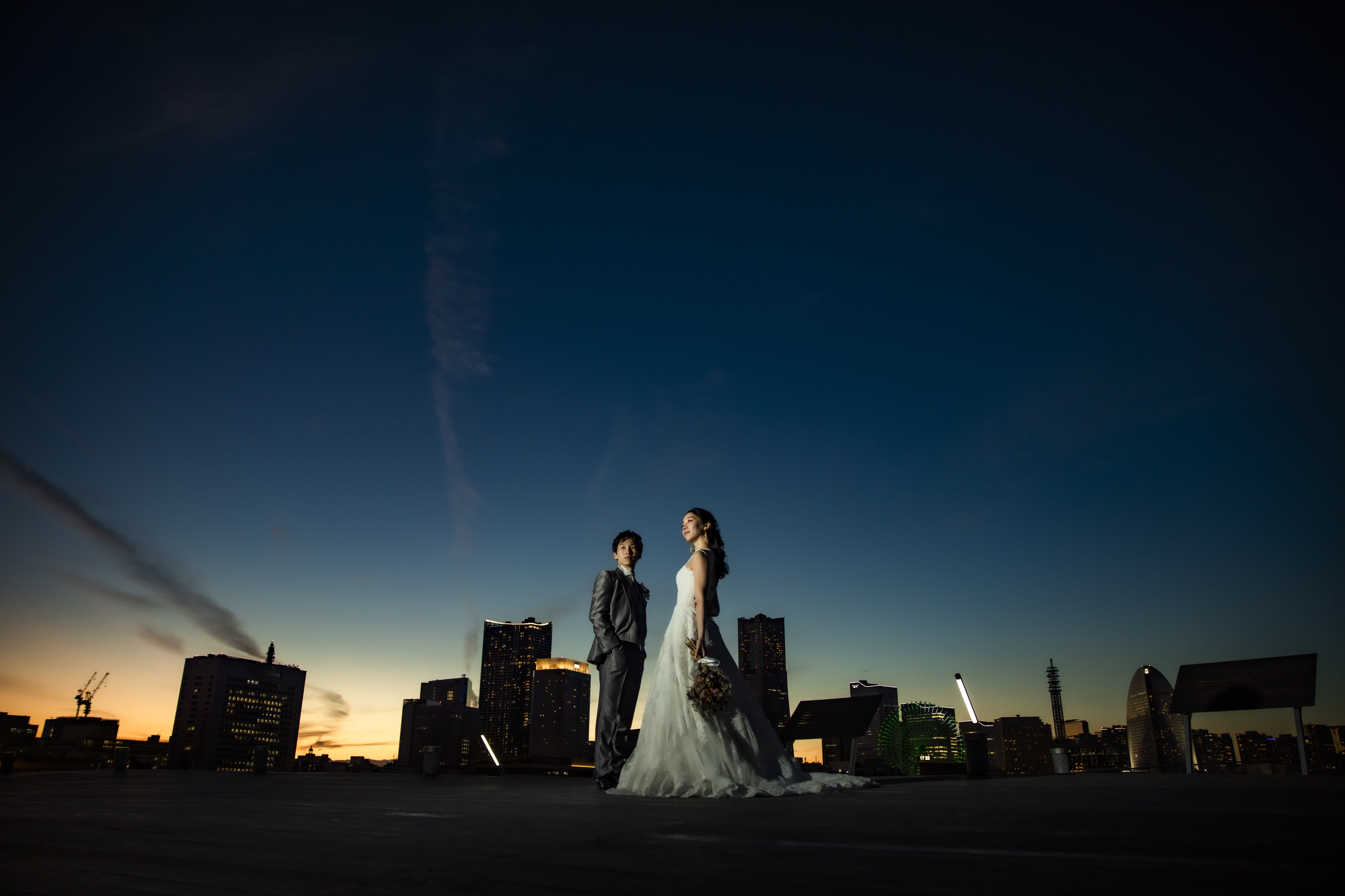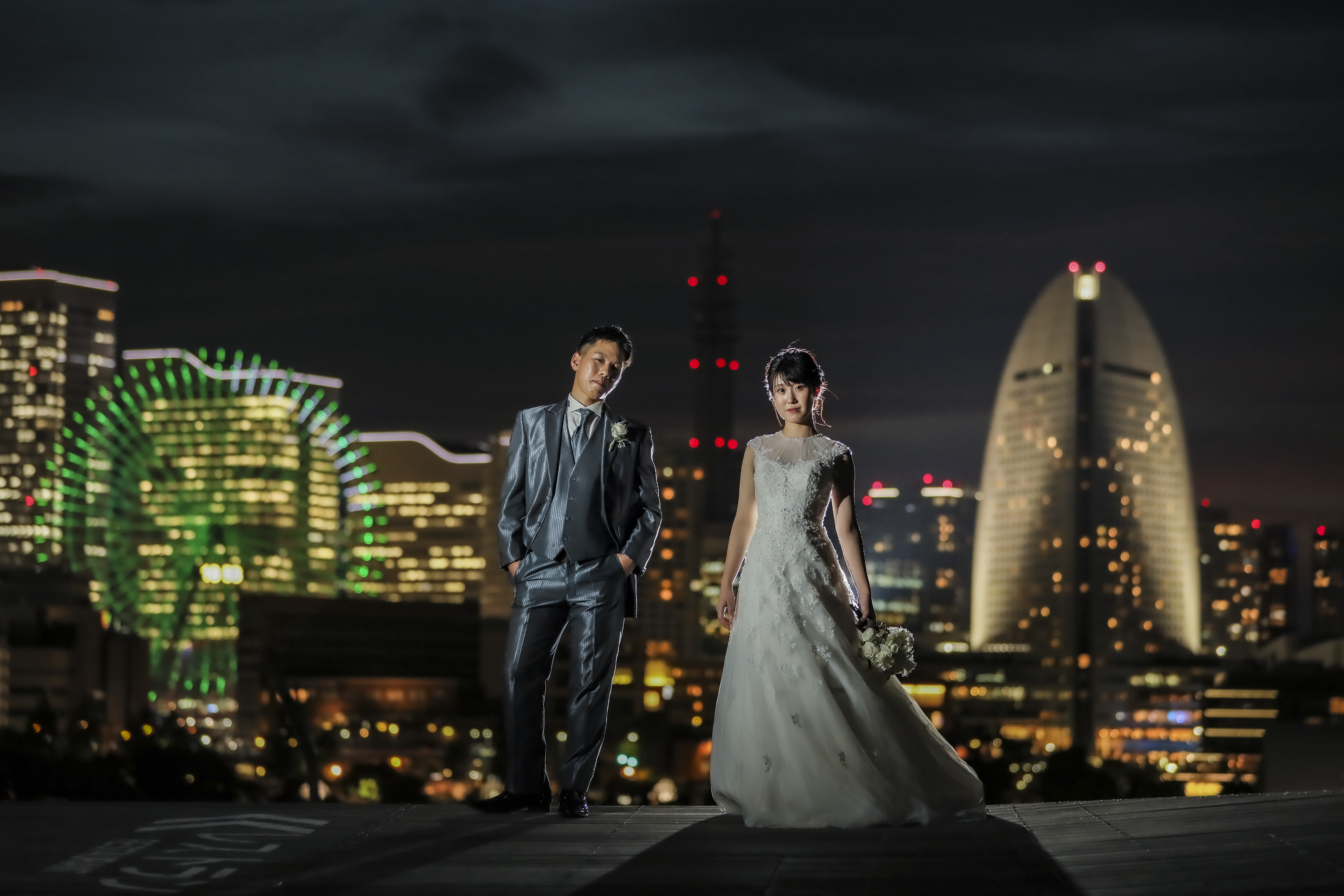 こんにちは。スタジオアクア横浜店カメラマンの宮園です。 日中に大桟橋にて撮影を行いました。 この日は曇り空でふんわりとした綺麗な光が差込んで、今回の白ドレスと相性がピッタリでした。 ご家族の方も一緒に来てくださっていて、とても賑やかで楽しい撮影になりました。 素敵なお写真が撮れたので早速ご紹介させていただきます! [_H6A0035_1.jpg] [ .jpg] 新郎様がブーケを持って新婦様に近づきプレゼント! [_H6A0293_1.jpg] [_H6A0413_1.jpg] 新婦様のソロショット。 髪飾りがとてもお似合いでお綺麗です^^ [_H6A0477_1.jpg] [_H6A0522_1.jpg] 上からの視点で撮影しました。 新郎様がブーケをもって新婦様を攫いに!全力でジャンプしている様子がとてもいいですね^^ そして同じ場所でご家族様とも撮りました。 皆さんでバンザイしているのが可愛らしいです! [_H6A0703_1.jpg] [_H6A0742_1.jpeg] [_H6A0769_1.jpg] [_H6A0793_1.jpeg] 日が暮れ始めて辺りが暗くなると、神秘的なお写真が撮ることができます。 映画のワンシーンのようでとても素敵です^^ 【 撮影までの流れ 】 〈 洋装 〉ご来店回数 3 回(オンライン相談会の場合は2回) 撮影相談会→ 衣装合わせ (撮影日の2週間~1ヶ月前頃)→ 撮影当日 → 商品の発送 〈 和装 〉ご来店回数 2 回(オンライン相談会の場合は1回) 撮影相談会 → 撮影当日 (衣装選びは撮影当日に行います) → 商品の発送 *衣装合わせ日と撮影日は、撮影相談会がお済みのお客様より順次ご案内となります。 当店専属プランナーがおふたりに合ったプランをご提案させていただきますので一緒に作っていきましょう! 是非一度ご相談会へご予約いただき、ご希望の内容をお伺いできればと思います^^