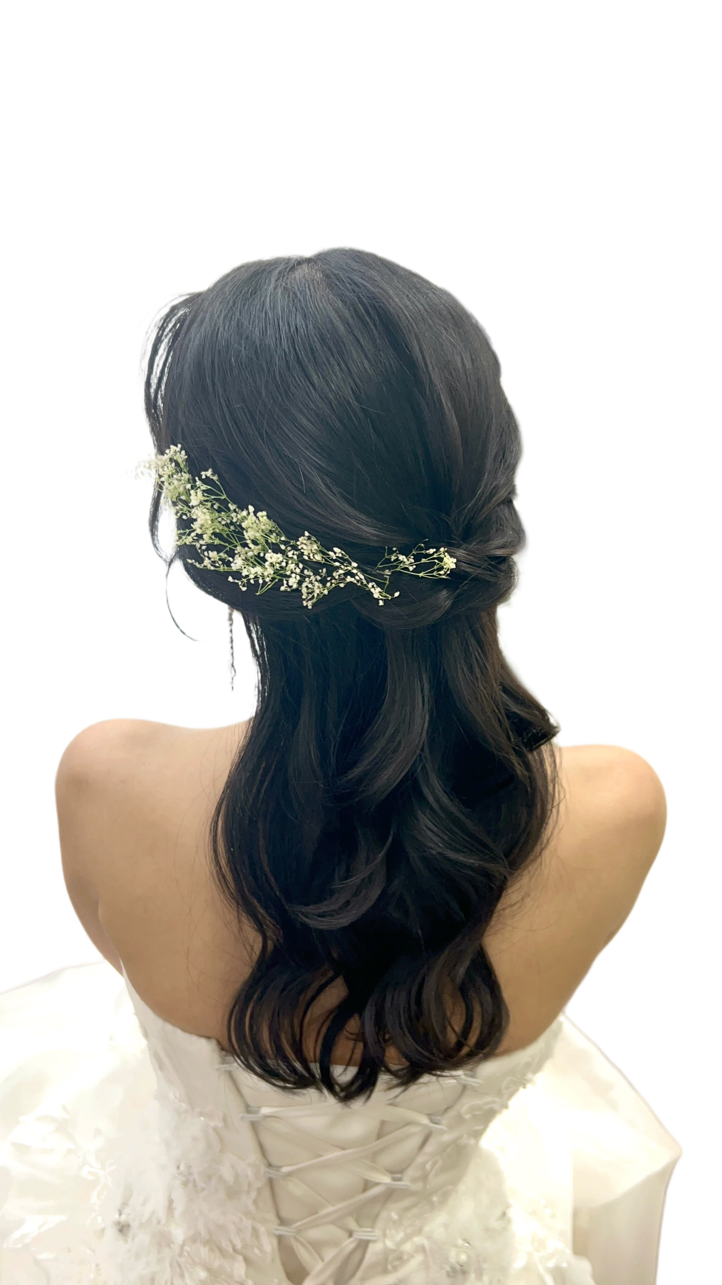 こんにちは、ヘアメイクの虻川です。 今回はロケーションにぴったりなカジュアルで大人かわいいヘアメイクを紹介いたします。 [写真1.JPG] ヘアはアップスタイルのカチモリヘア。 編み込みを混ぜて作っているので人と被らない個性的でかわいいヘアスタイルです。 [写真2.JPG] 髪飾りは紫の小花に霞草。 紫の花がアクセントになって大人っぽい印象になります。 [写真3.JPG] [写真4.JPG] 前髪はシースルーで、カチモリにあったトレンドスタイルに。 シースルーの前髪は抜け感も出て可愛らしさアップ。 [写真5.jpg] メイクは強くなりすぎないように、全体的に淡めのカラーで柔らかい雰囲気に。 ナチュラルだけど幸福感があるメイクにしました。 今回のヘアメイクは前撮りならではのカジュアルでトレンドを取り入れたおしゃれな写真を撮りたい方におすすめです🌿 撮りたい雰囲気やイメージに合わせてヘアメイク、衣装のご提案をさせていただきます☺︎ お気軽にご相談くださいませ。 \ ホームページのギャラリーも随時更新しています♫ / ご指名も承っておりますので、ぜひご覧ください!! Photographer :Rinon Shigehisa Hair and Make:Yuriho Abukawa 【 撮影までの流れ 】 〈 洋装 〉ご来店回数 3 回(オンライン相談会の場合は2回) 撮影相談会→ 衣装合わせ (撮影日の2週間〜1ヶ月前頃) → 撮影当日 → 商品の発送 〈 和装 〉ご来店回数 2 回(オンライン相談会の場合は1回) 撮影相談会 → 撮影当日 (衣装選びは撮影当日に行います) → 商品の発送 *衣装合わせ日と撮影日は、撮影相談会がお済みのお客様より順次ご案内となります。 当店専属プランナーがお二人に合ったプランをご提案させていただきますので 一緒に作っていきましょう!イメージなくても全然大丈夫です! お気軽にご相談ください!皆様のお問い合わせ、心よりお待ち申し上げます。 * ご相談会予約ページこちら* 是非一度ご相談会へご予約いただき、ご希望の内容をお伺いできればと思います^^