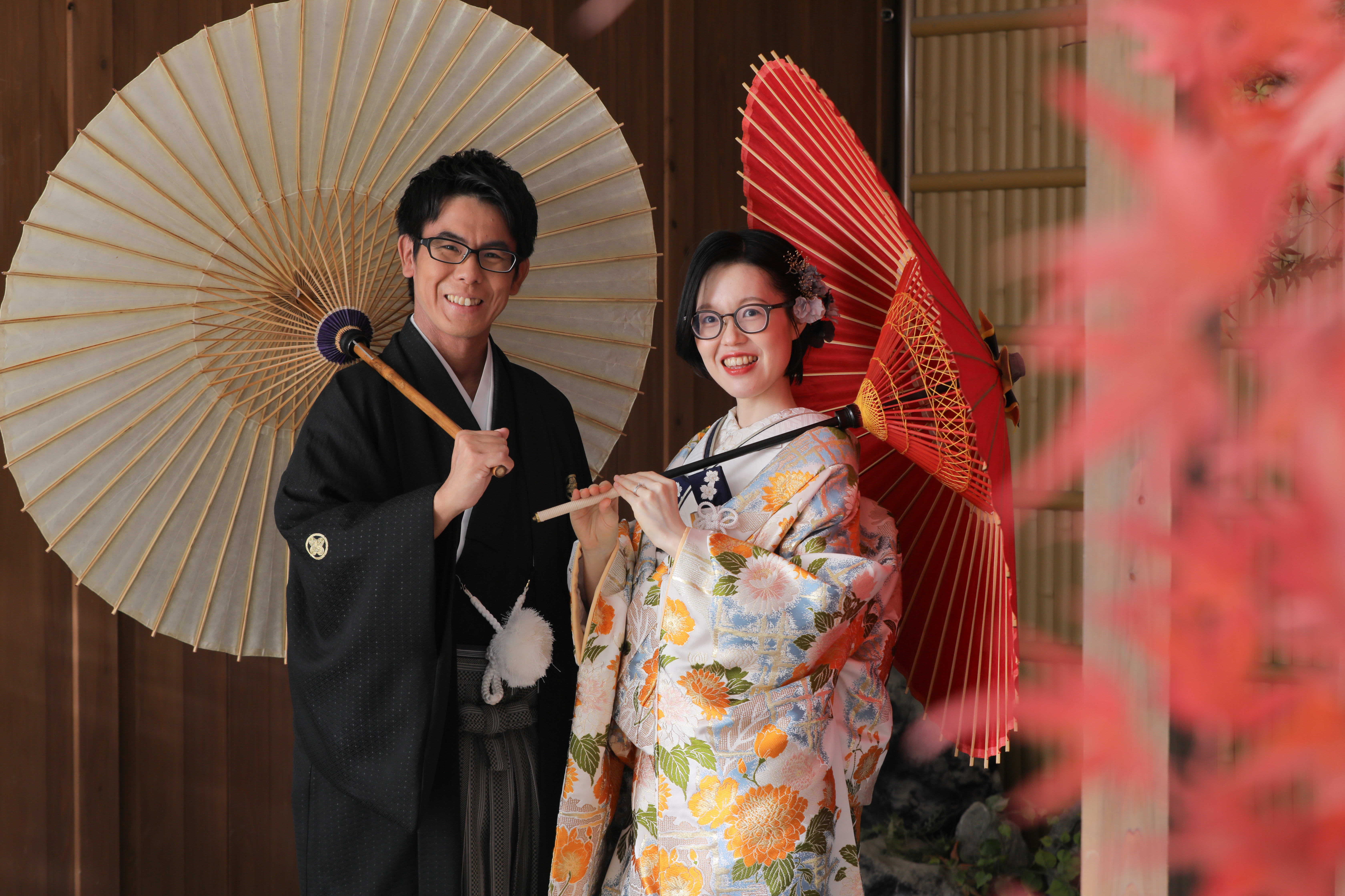 こんにちは!スタジオアクア横浜店フォトグラファーの鳴海です! 今回は屋内庭園スタジオで和装、ハウススタジオで洋装の撮影をしたのでご紹介します。桜や竹林、紅葉とシーンごとに背景が変わるので、同じスタジオ内でも写真の印象がぐっと変わります。 お二人が持ち込んでくださったアイテムで思わず笑ってしまいました。終始穏やかな雰囲気でした! [362738-009.jpeg][362738-071.jpeg] [362738-073.jpeg] パア!ユーモアたっぷりなお二人と、楽しい撮影になりました^^ [362738-088.jpeg][362738-122.jpeg] [362738-166.jpeg] 和装の最後はお辞儀です!お二人ともいい笑顔ですね^^ [362738-198.jpeg] 洋装にチェンジして!まずは新婦様のソロカットです。和装の時とはまた雰囲気も変わって素敵です♡ [362738-242.jpg][362738-278.jpeg] 白いお花の背景の前でも可愛らしく撮影しました。新婦様にギュッとされて照れている新郎様とっても可愛いですね^^ [362738-308.jpeg] 【 撮影までの流れ 】 〈 洋装 〉ご来店回数 3 回(オンライン相談会の場合は2回) 撮影相談会→ 衣装合わせ (撮影日の2週間~1ヶ月前頃)→ 撮影当日 → 商品の発送 〈 和装 〉ご来店回数 2 回(オンライン相談会の場合は1回) 撮影相談会 → 撮影当日 (衣装選びは撮影当日に行います) → 商品の発送 *衣装合わせ日と撮影日は、撮影相談会がお済みのお客様より順次ご案内となります。 当店専属プランナーがおふたりに合ったプランをご提案させていただきますので一緒に作っていきましょう! 是非一度ご相談会へご予約いただき、ご希望の内容をお伺いできればと思います^^