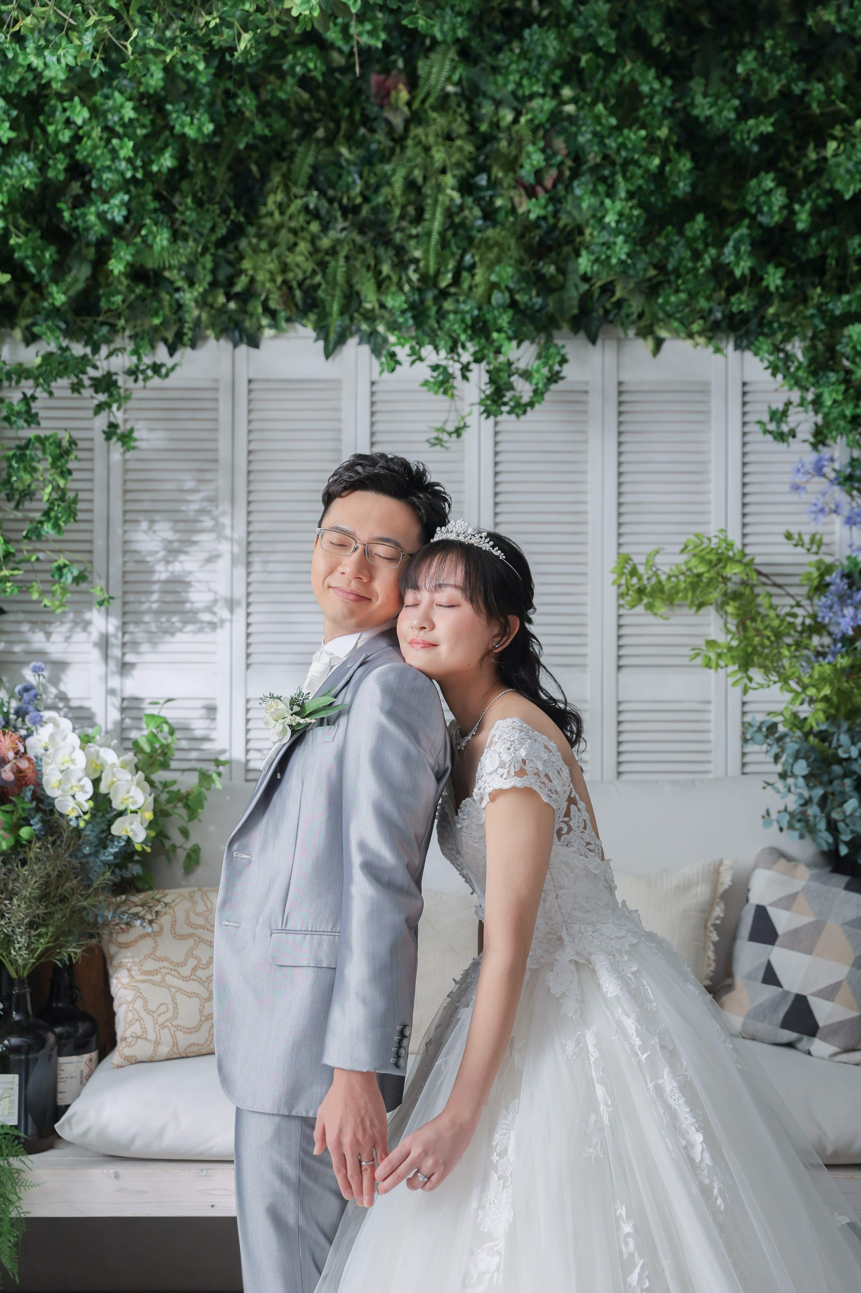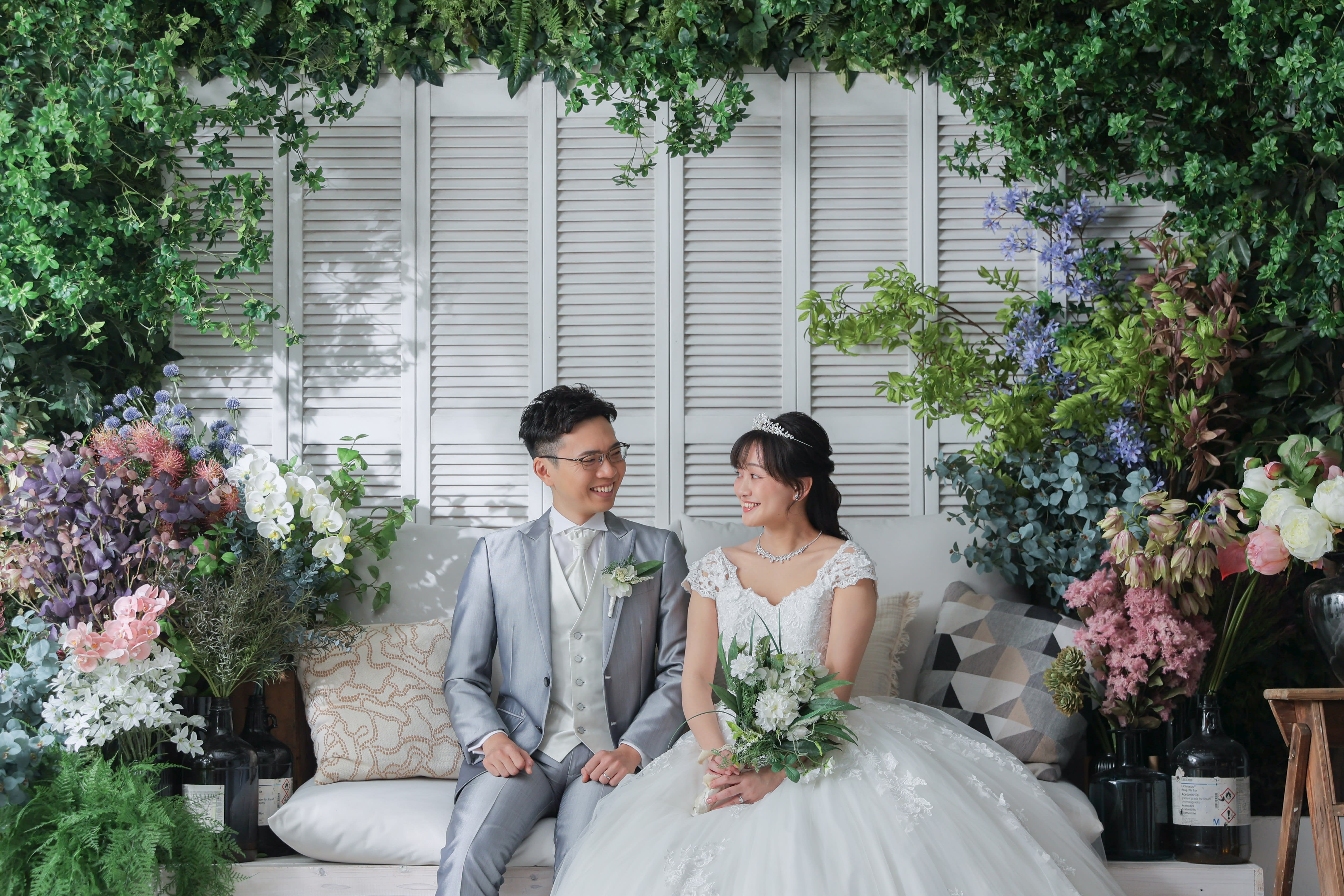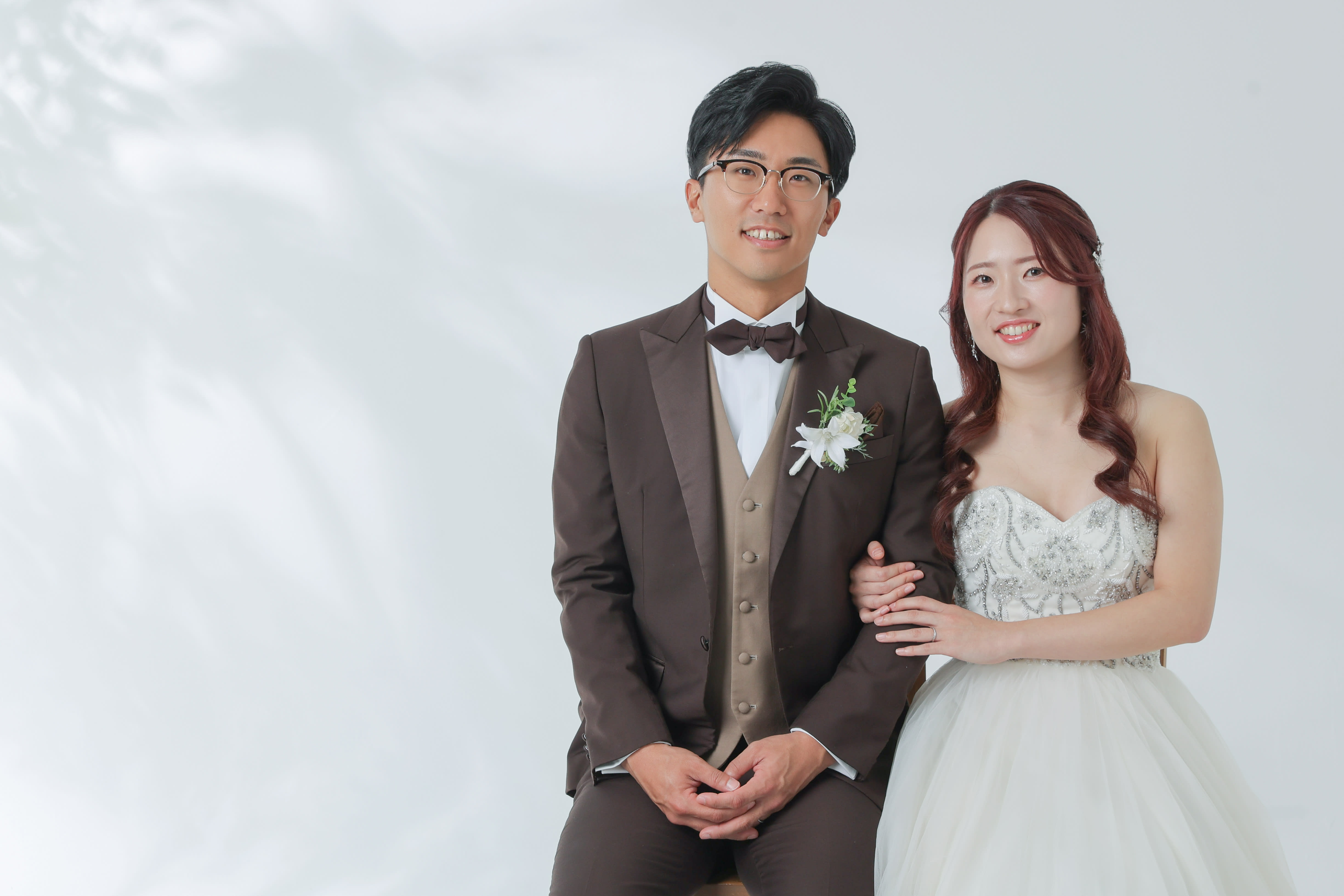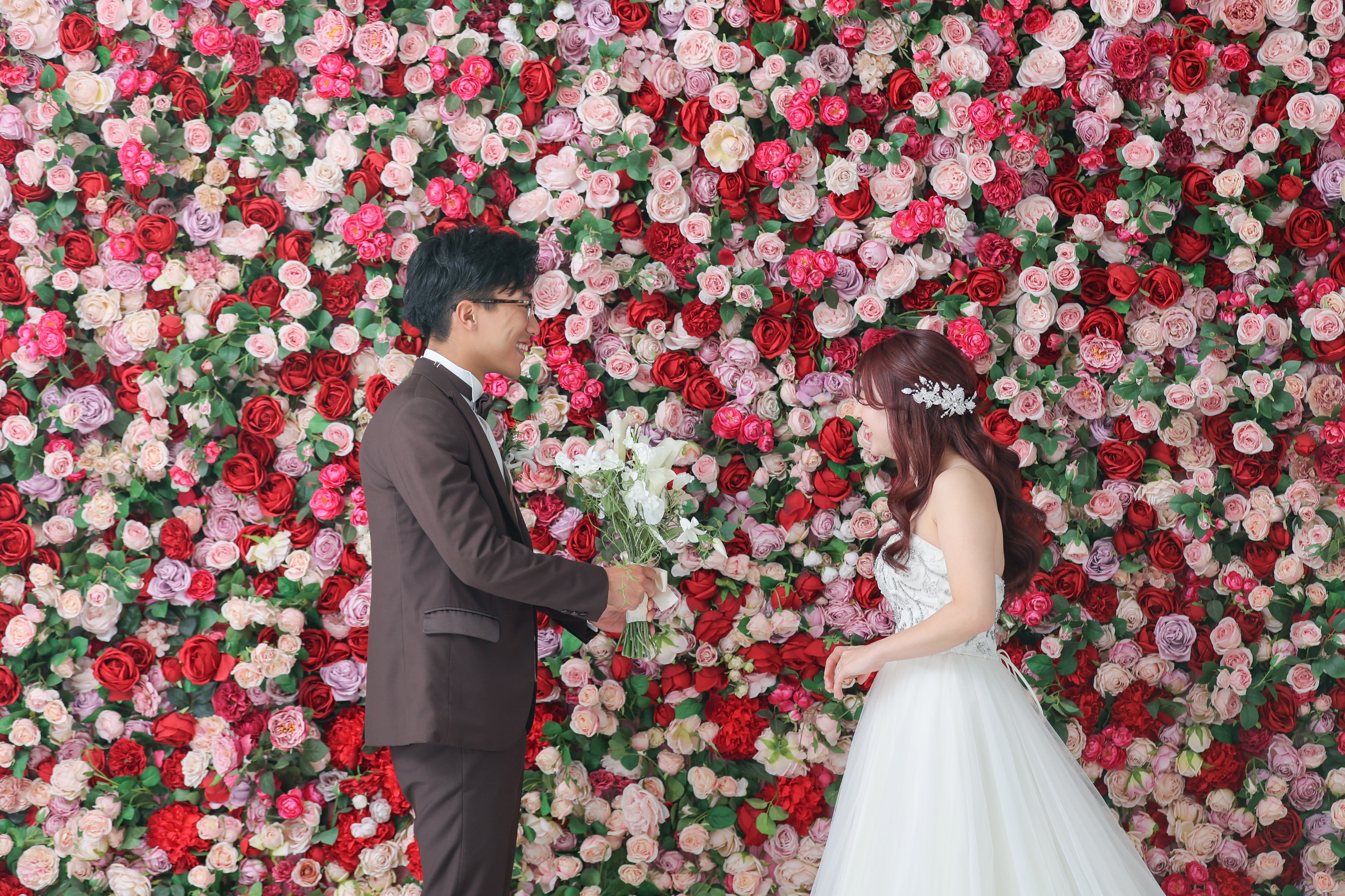 本日は洋装ハウススタジオで撮影させていただいたお二人をご紹介します! まずはバラに囲まれたような華やかな背景。 見つめ合うと笑顔になるお二人で幸せな空気が伝わってきました! [357455-19.jpg] 続いては、ボタニカル背景。ライティングで木漏れ日を作りました。 [357455-67.jpg] そして、白背景では正式な立ちポーズを撮影しました。 [357455-78.jpg] これからのお二人の未来に、たくさんの幸せが訪れますように心より願っております。 末永くお幸せに! [357455-139.jpg] / ホームページのギャラリーも随時更新してます👀 ご指名も承っておりますので、ぜひご覧ください!! \ Hair&Makeup:大西華加 Photographer:大瀬理佐子 【ご撮影までの流れ】 〈洋装〉ご来店回数3回(オンライン相談会の場合は2回) 撮影相談会(ご来店orオンライン) ↓ 衣装合わせ(ご撮影日の2週間~1ヶ月前頃) ↓ 撮影当日 ↓ 納品 〈和装〉ご来店回数2回(オンライン相談会の場合はたった1回!) 撮影ご相談会(ご来店orオンライン) ↓ 撮影当日(お衣装合わせは当日行います) ↓ 納品 ※お衣装合わせ日・撮影日は撮影相談会をお済みのお客様より順次ご案内させていただきま す。 当店専属プランナーがお二人に合ったプランをご提案させていただきますので一緒に作っていき ましょう! イメージがなくても全然大丈夫です! お気軽にご相談ください! 皆様のお問い合わせ、心より お待ち申し上げます。