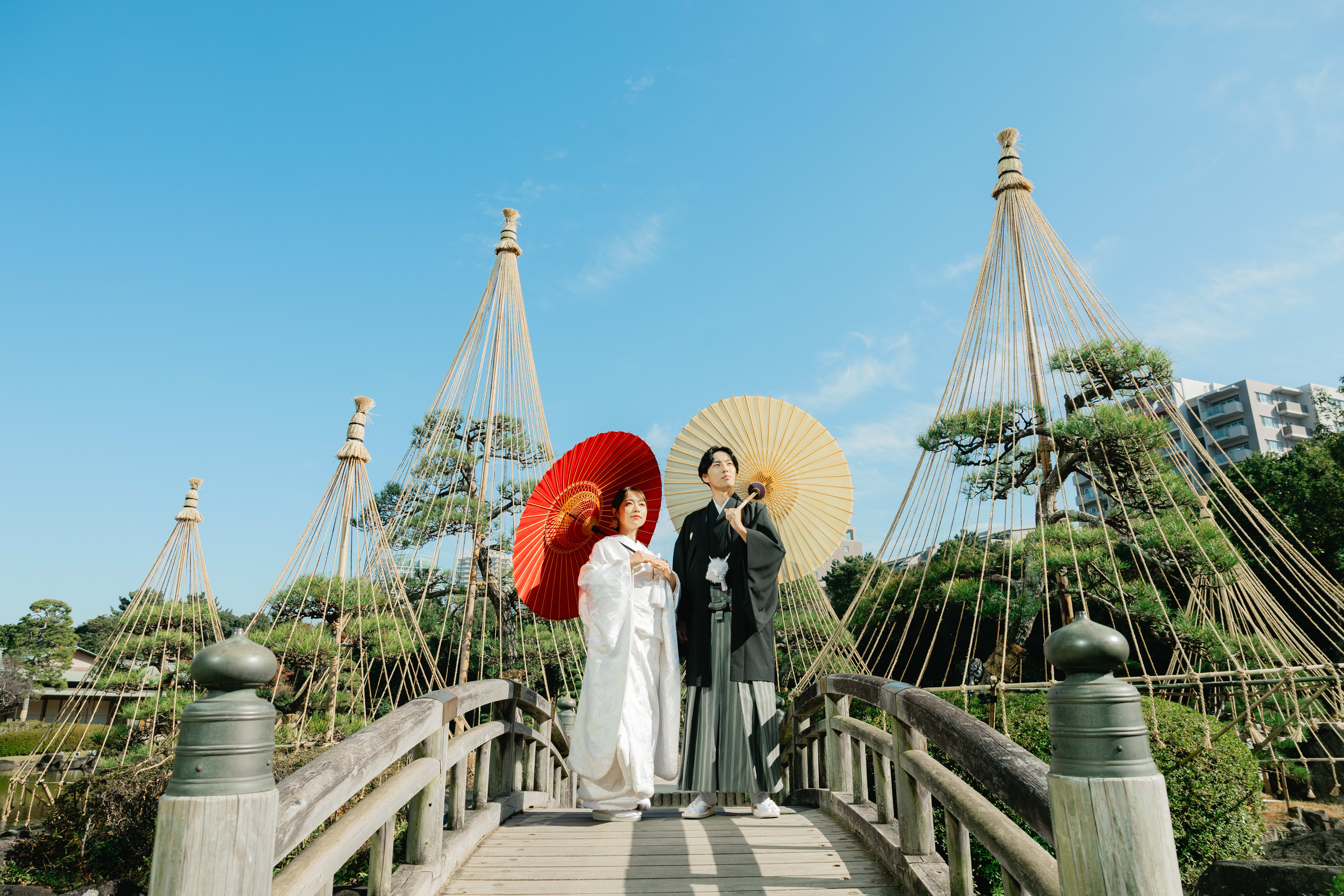 皆様、新年あけましておめでとうございます! スタジオAQUA千葉船橋店の岡でございます。 私たちスタジオAQUA千葉船橋店は2026年も、お二人の幸せな瞬間を写真を通して残してまいります。 本年もよろしくお願いたします。 先月撮影させていただいたお客様の写真をぜひご紹介させてください! [343919-27.jpeg] まずは傘を使ったお写真から。和傘に映るお二人のシルエットがロマンチックでいいですね! こういう太陽の光を生かした写真はロケーション撮影ならではですね! [343919-58.jpeg] お次は紅葉をバックに! 12月の中旬の撮影ではありましたが、園内には紅葉がところどころ残っておりました。 紅葉や、桜など船橋店から行けるロケーション地には和装に似合う木々がたくさんです! [343919-68.jpeg] 園内を歩くお二人を後ろからパシャリ。 なんだかとっても素敵なお二人の後ろ姿ですよね、! [343919-94.jpeg] 園内には、こんなに素敵な場所も! 太陽の光、紅葉の位置、全てがお二人のために準備されていたようです! [343919-110.jpeg] お顔を寄せ合う二人。とっても笑顔が素敵で柔らかい空気で溢れてますね! [343919-135.jpeg] 見浜園と言えば、この太鼓橋です! 風がない日は池にお二人が反射する様子が見れます! その時の風や天気などによって撮れる写真が変化するのもロケーション撮影の楽しいところなんです! [343919-146.jpeg] この日はとにかく青空! 結婚式の日の風船を一緒に持って撮影しました! [343919-152.jpeg] 中にはこんなシルエットショットも。 一気に雰囲気が変わりますよね。とっても素敵なお二人です。 [343919-161.jpeg] キラーンと輝く太陽がお二人を照らしてくれています。 [343919-177.jpeg] 最後は後ろからお二人を。 12月の中旬とは思えないほど緑がたくさんの見浜園。常緑樹が多い庭園なので冬でも撮影可能です! ぜひ、一緒にロケーション撮影をしましょう! この度は、撮影を当店にご依頼いただき誠にありがとうございました。 \ ホームページのギャラリーも随時更新しています♫ / ご指名も承っておりますので、ぜひご覧ください!! Photographer :岡 優成 Hair&Make:山下 育未 【 撮影までの流れ 】 〈 洋装 〉ご来店回数 3 回(オンライン相談会の場合は2回) 撮影相談会→ 衣装合わせ (撮影日の2週間〜1ヶ月前頃)→ 撮影当日 → 商品の発送 〈 和装 〉ご来店回数 2 回(オンライン相談会の場合は1回) 撮影相談会 → 撮影当日 (衣装選びは撮影当日に行います) → 商品の発送 *衣装合わせ日と撮影日は、撮影相談会がお済みのお客様より順次ご案内となります。 当店専属プランナーがお二人に合ったプランをご提案させていただきますので一緒に作っていきましょう! イメージがなくても全然大丈夫です! お気軽にご相談ください! 皆様のお問い合わせ、心よりお待ち申し上げます。