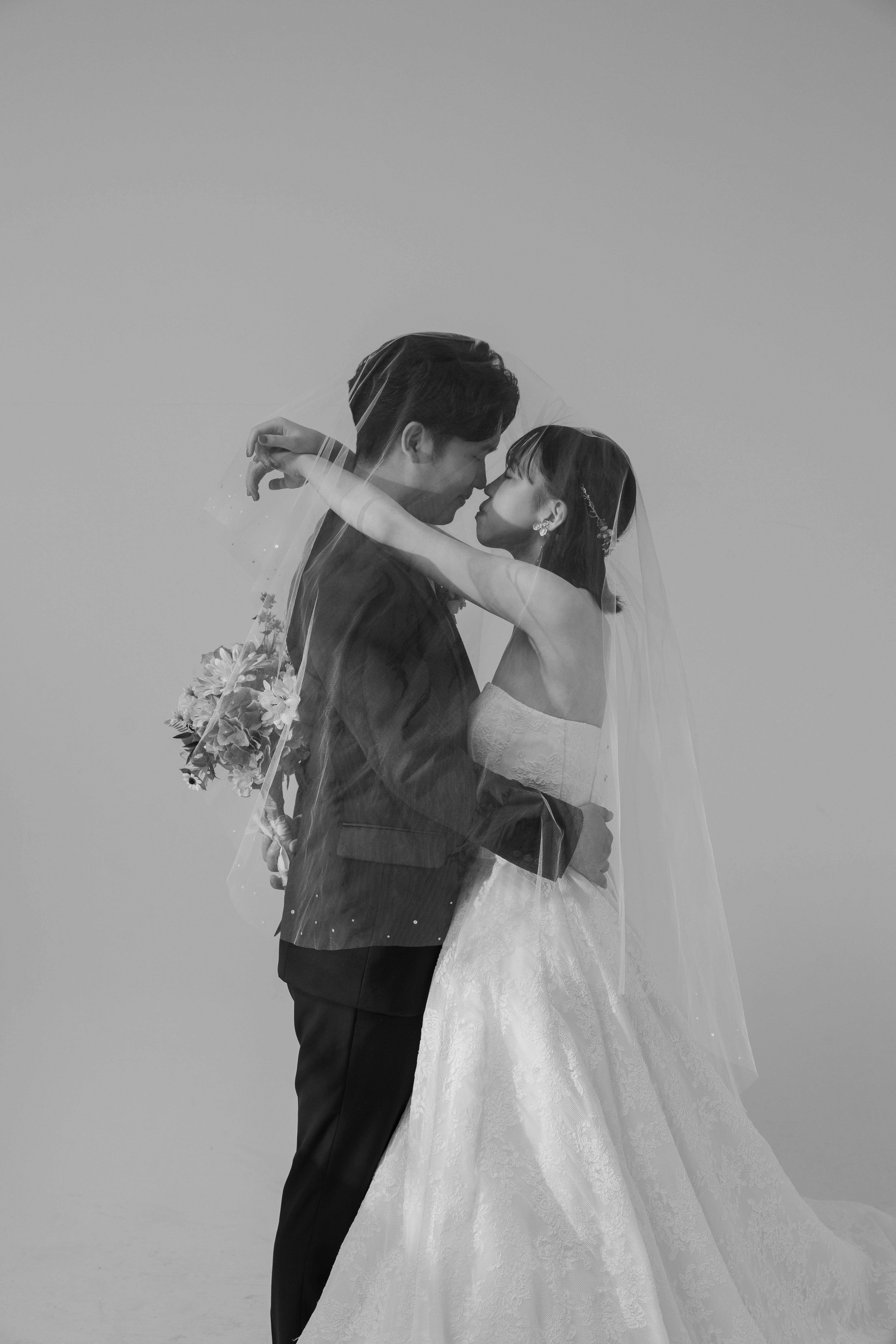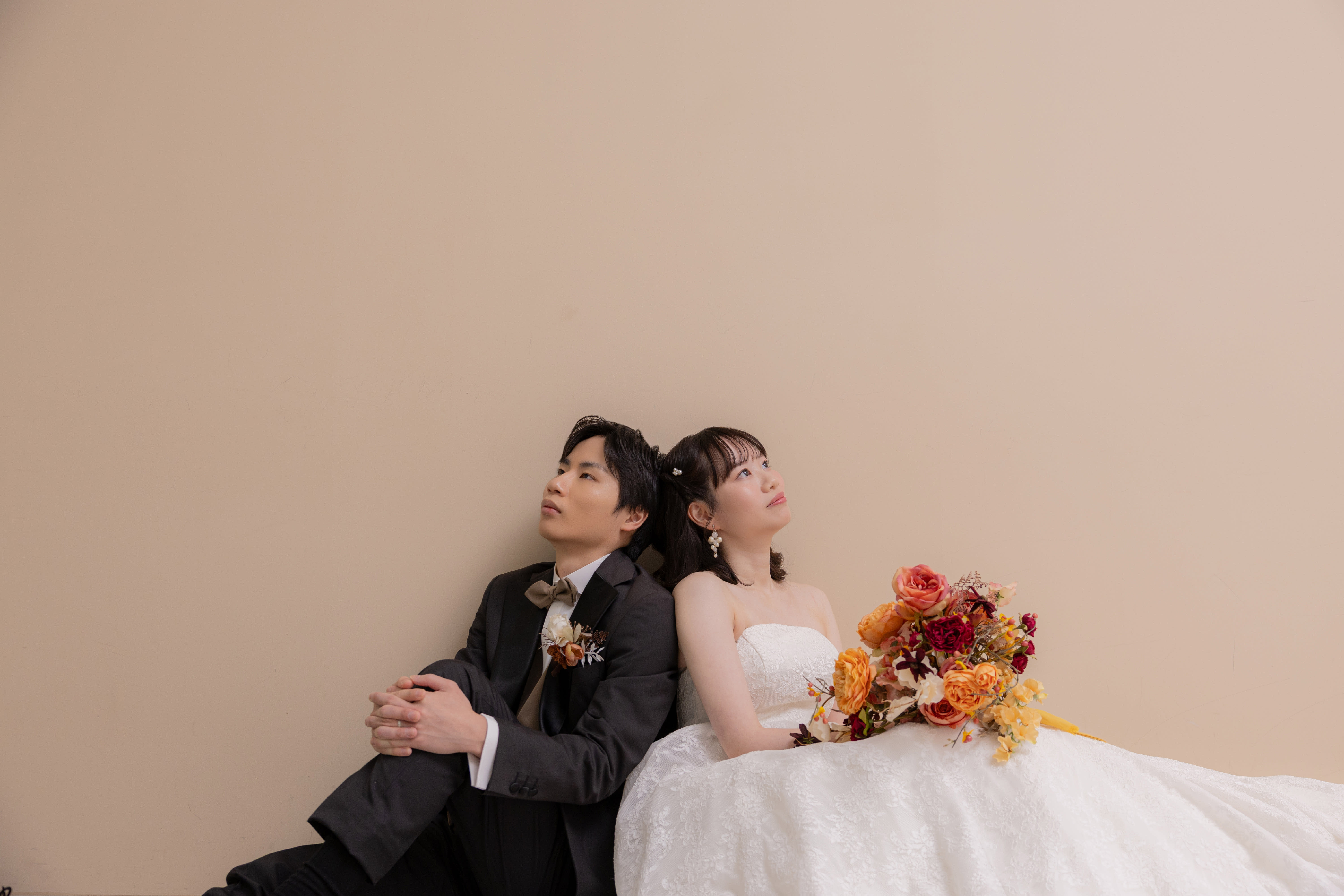 ✳︎メリークリスマス!✳︎ こんにちは!スタジオAQUA千葉船橋店の遠藤です^^ 今回のお客様はオリジナルグッズを使って撮影してみました♪ [354683-15.jpg] 最初はお二人の立ち姿のアップから! スタジオに入った瞬間から笑顔が素敵なお二人です^^ 緊張感なく撮影を進めていきます♪ [354683-71.jpg] 次はグレー背景で椅子を使った少しクールめのお写真。 新郎さんが慣れた仕草でポーズを決めてくれたのに驚きました笑 [354683-75.jpg] お次はシンプルだけど個性的な背景の前で一枚。 新郎さん側と新婦さん側でそれぞれ背景の色が違うのがポイントです。 新婦さんの白ドレスもしっかり映えます^^ [354683-91.jpg] お次はブーケで顔を隠すポーズです^^ 最近はもうマストになっていますね。 写真は使いたいけど顔が映るのが恥ずかしいと言う方でも使いやすい一枚です! [354683-97.jpg] そこからお互いの顔をのぞいてみました❤︎ 新郎さんの慎重そうな表情が素晴らしすぎます! ストーリー性のあるお写真になりました^^ [354683-104.jpg] 雰囲気はガラリと変わり、一気にシックに。 光とベールを使ったおしゃれな一枚です。 普段とは違う雰囲気のお二人も、良いですね! [354683-128.jpg] 続いては花壁で振り返りショット。 後ろ姿も綺麗に見せながらの、美しい一枚です。 [354683-141.jpg] ここでお二人が持参した小物が登場です! お二人のご友人様がプレゼントしてくれたTシャツを使っていきます! 目元だけ出してはい、チーズ! [354683-148.jpg] 最後はオリジナルのポーズで締めました^^ 実はこのポーズ、、、 [354683-150.jpg] Tシャツの胸元にあるステッチを再現したものなんです! これはお二人がお出かけした際の記念写真をもとに作られた刺繍のようで、 とても可愛く、楽しく再現してくださいました^^ \ ホームページのギャラリーも随時更新しています♫ / ご指名も承っておりますので、ぜひご覧ください!! Photographer :遠藤 美智 Hair&Make:椛島 恵美李 【 撮影までの流れ 】 〈 洋装 〉ご来店回数 3 回(オンライン相談会の場合は2回) 撮影相談会→ 衣装合わせ (撮影日の2週間〜1ヶ月前頃)→ 撮影当日 → 商品の発送 〈 和装 〉ご来店回数 2 回(オンライン相談会の場合は1回) 撮影相談会 → 撮影当日 (衣装選びは撮影当日に行います) → 商品の発送 *衣装合わせ日と撮影日は、撮影相談会がお済みのお客様より順次ご案内となります。 当店専属プランナーがお二人に合ったプランをご提案させていただきますので一緒に作っていきましょう! イメージがなくても全然大丈夫です! お気軽にご相談ください! 皆様のお問い合わせ、心よりお待ち申し上げます。