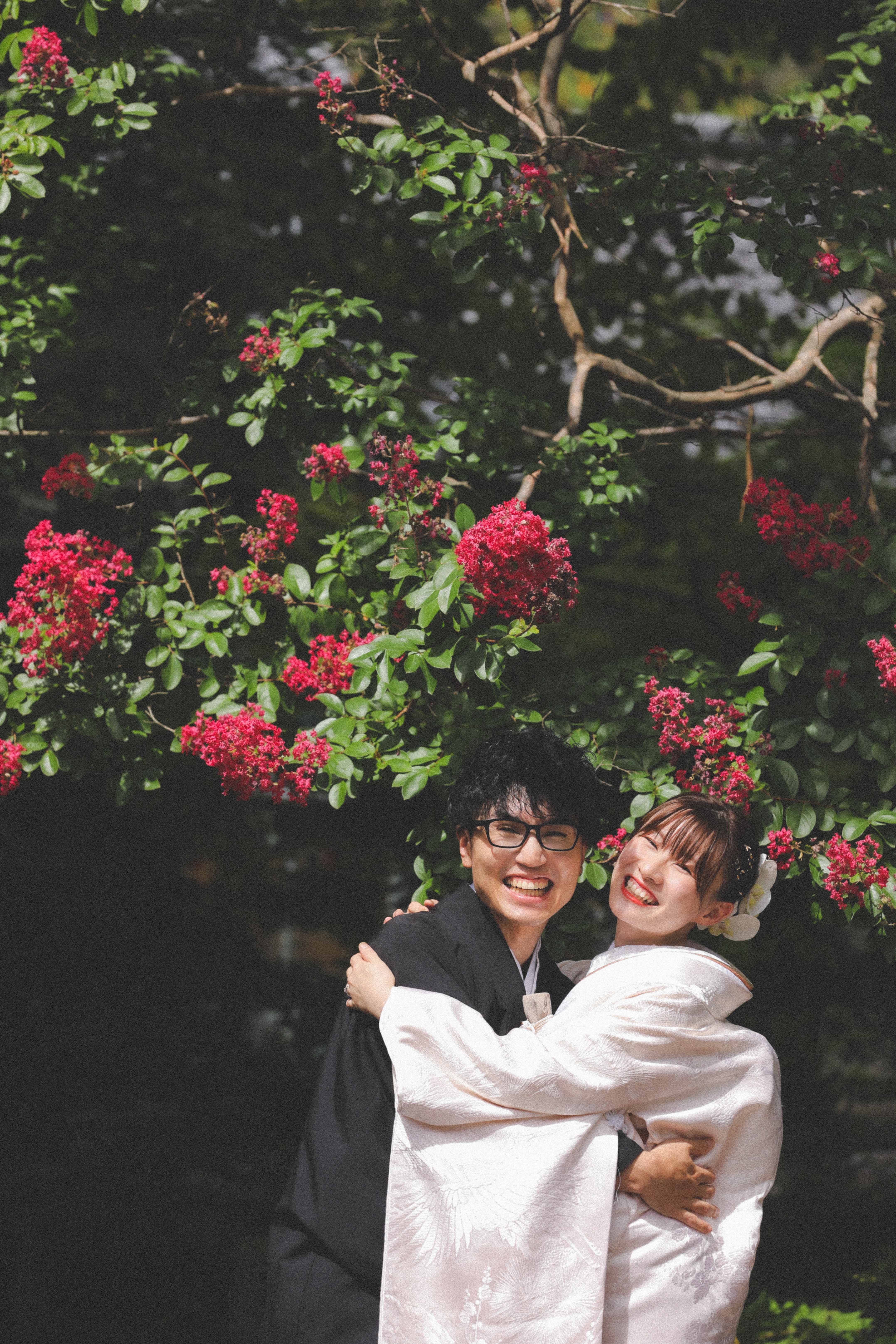 先日山梨の方に撮影に行ってきました。 この日の天気は晴天で紅葉も綺麗に咲いてました。 まずは浅間大社から。 [omake-1.JPG] [omake-2.JPG] この日は七五三で人がとても多かったですね。 人が映らないように場所など探しながら撮影していきました。 [omake-3.JPG] 柔らかい光が入ってきててとってもいい感じでしたね。 笑顔が可愛い明るいお二人でした^ ^ 可愛いですね。 [omake-6.JPG] おみくじも引いてみました。 [omake-9.JPG] 新郎様は大吉で満面の笑顔w [omake-10.JPG] 実はご家族の方々とご友人も来てくれていました。 賑やかな楽しい撮影でしたね。 [omake-11.JPG] 綺麗な光と木漏れ日がいい感じでした。 [omake-16.JPG] まだ真っ赤にはなってなかったけど緑と赤のグラデーションも可愛かったです。 [omake-20.JPG] ここの秋色の橋は個人的に大好きな場所で、この時期後ろの背景がとっても綺麗なんです。 下の池に反射してるのも良いですよね。 [omake-24.JPG] ご友人たちとのオフショット。小学校からの幼馴染だそうで、とっても仲良しでした。 [omake-26.JPG] 富士山も綺麗なお顔を見せてくれて最高でしたね。 [omake-27.JPG] 2箇所目は精進湖へ。 湖の方は気温もグッと下がり寒かったですね。 紅葉はとっても綺麗で一面真っ赤。 今年の紅葉はめちゃくちゃ綺麗と現地の人が言っておりました。 [omake-49.JPG] [omake-47.JPG] [omake-65.JPG] 富士山綺麗でとっても素敵な1日でしたね。 [omake-29.JPG] [omake-32.JPG] [omake-72.JPG] 【 撮影までの流れ 】 〈 洋装 〉ご来店回数 3 回(オンライン相談会の場合は2回) 撮影相談会→ 衣装合わせ (撮影日の2週間~1ヶ月前頃)→ 撮影当日 → 商品の発送 〈 和装 〉ご来店回数 2 回(オンライン相談会の場合は1回) 撮影相談会 → 撮影当日 (衣装選びは撮影当日に行います) → 商品の発送 *衣装合わせ日と撮影日は、撮影相談会がお済みのお客様より順次ご案内となります。 当店専属プランナーがおふたりに合ったプランをご提案させていただきますので一緒に作っていきましょう! 是非一度ご相談会へご予約いただき、ご希望の内容をお伺いできればと思います^^