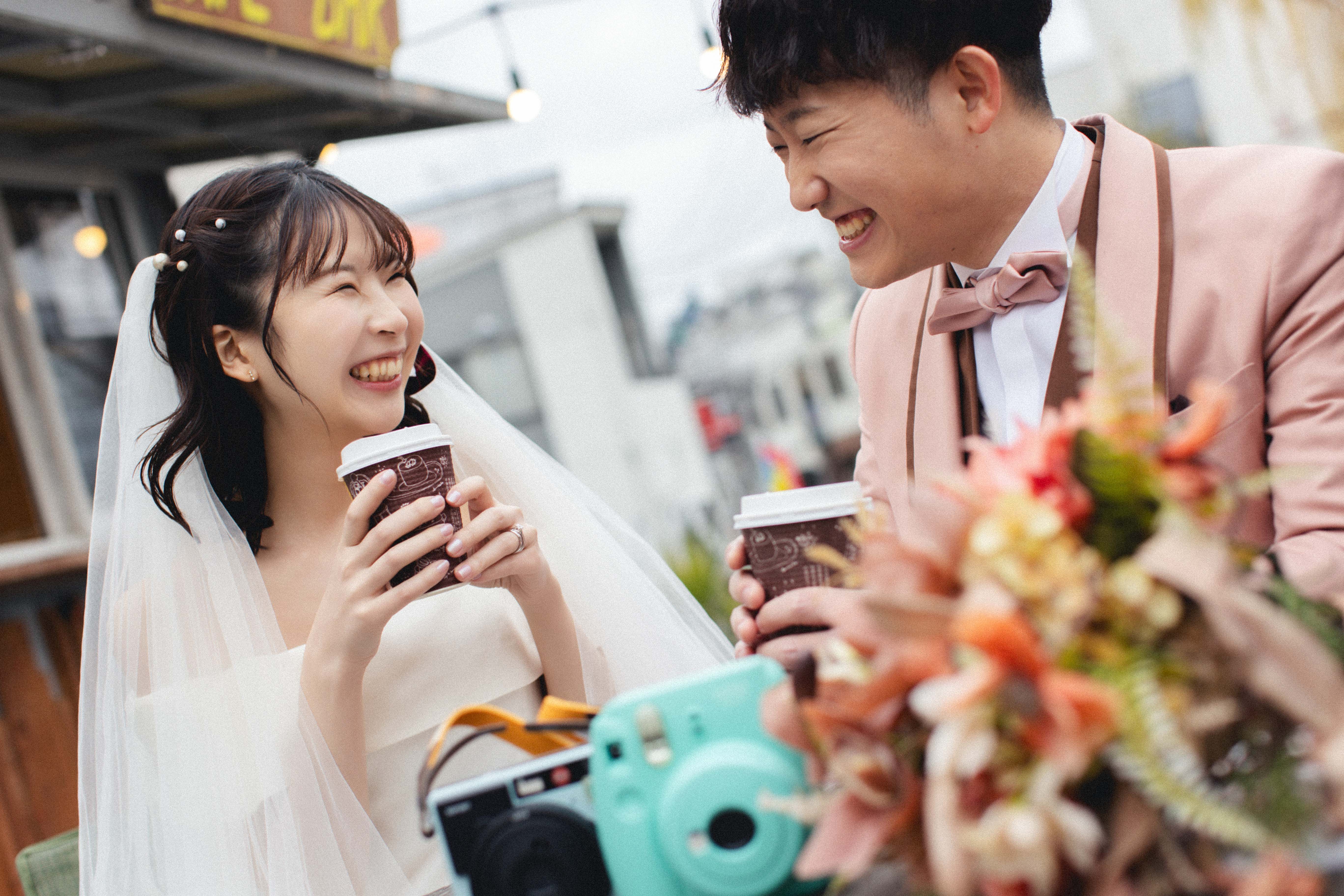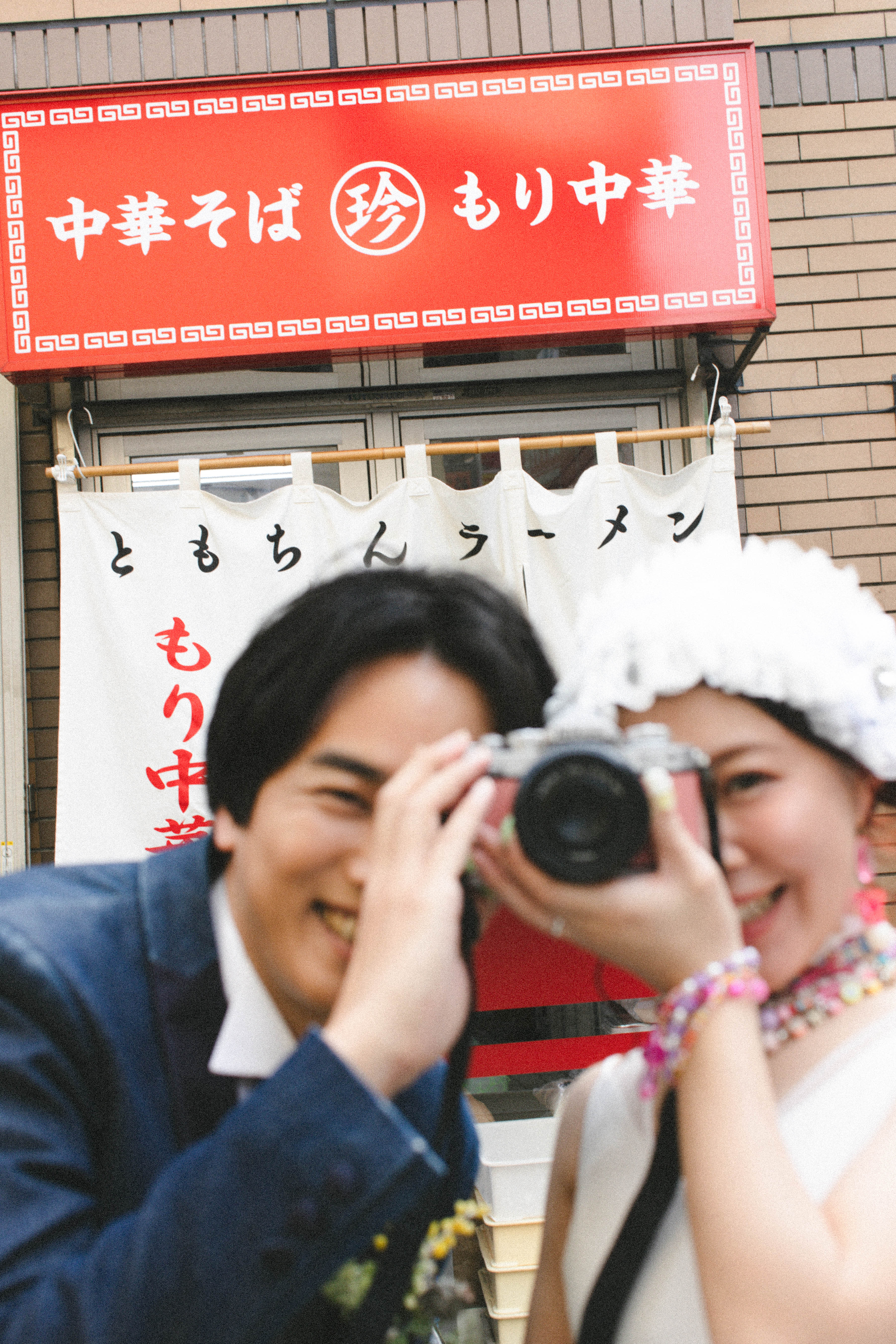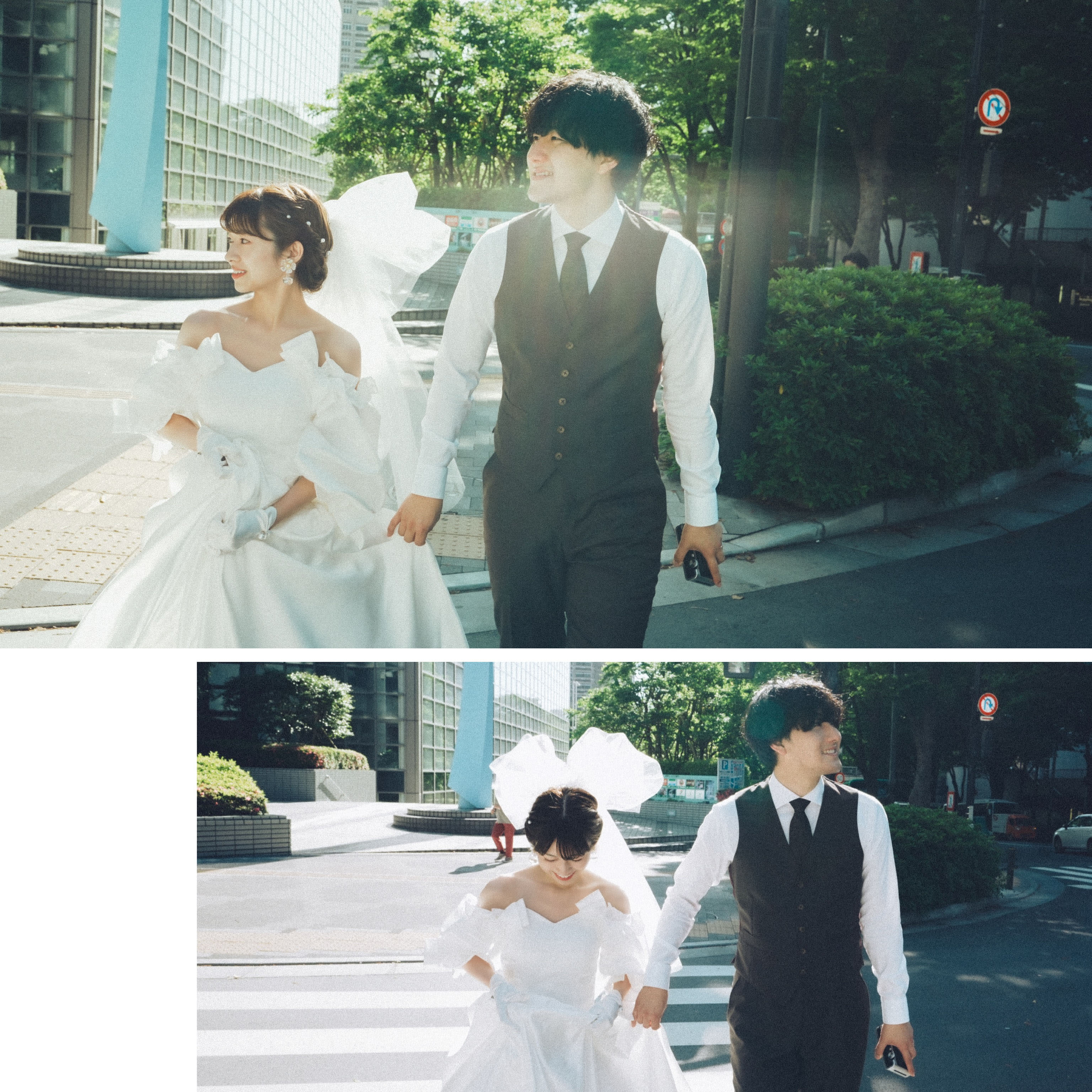 本日は先日撮影させていただいたのですがお客様をご紹介させていただきます。 今回のロケ地は新郎様が昔住んでいた思い出の詰まった街で、 新婦様とお付き合いしている時もよくデートした街だそうです。 特にどこで撮るかなどは決めず、二人がよく行った場所など散歩しながら撮影を進めていきました。 [blog-1.JPG] 高架下は少しカッコよくストリート感のある写真がいろいろ撮れました。 [blog-2.JPG] 天気もとても良くて、光や影を探しながらいろいろと撮影していきました。 [blog-3.JPG] こちらの居酒屋で初めて出会ったお二人。 ちょうど光が綺麗に居酒屋の看板に当たっていて印象的で素敵な写真を残すことができました。 [omake-10.JPG] 新郎様の昔住んでた家に向かって楽しく散歩しながら、緊張もすることなく、ルンルンなお二人。 [blog-5.JPG] 可愛い青のドアや標識、そして綺麗な柔らかい光がとってもマッチしていて、 [blog-7.JPG] こんな感じでキリッとしたお写真も残しつつ、いろいろな場所を巡って行きましたね。 [blog-4.JPG] 最終目的地に到着。 少し小さな高架下がとても良い雰囲気を出していました。 この先が新郎様が昔住んでいた家だそうで、 [blog-9.JPG] ドラマの撮影にも使われることが多いそうです。 雰囲気のあるとても素敵なところでした。 [blog-10.JPG] 二人の影にストーリー性を感じたのでこんな感じで撮影も。 [blog-11.JPG] 番傘を使って少しアーティスティックなお洒落な感じの撮影もしてみました。 [blog-8.JPG] スポットライトのような光がポツンと差し込んできたので、そこの光の中に二人に入ってもらって撮影。 とても印象的な写真になりました。 二人にもっと目を向けたかったので周りの色に目がいかないようにあえてモノクロで修正させていただきました。 [blog-13.JPG] とにかくお洒落で、大人な雰囲気のお二人。 和装姿もとても似合ってましたね。 [blog-14.JPG] 最後は思い出のキャップを被っての撮影。 少しストリート感を出したかったのと、二人の衣装と同じ色でお洒落かなと思ってここの背景を見つけました。 お洒落ですよね。 [blog-15.JPG] 本当に楽しくてあっという間に時間が過ぎていきましたね。 和装✖️街ブラ 個人的に大好きです。 お二人の担当ができたことを心から嬉しく思います。 ありがとうございました。