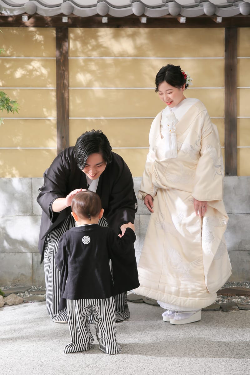 お二人のみの撮影をしているとお子様がお二人の周りをくるくる何回も回っていました。一人で歩けるようになってスタジオ探検を楽しんでくれていました。この自由な感じも良いですね!