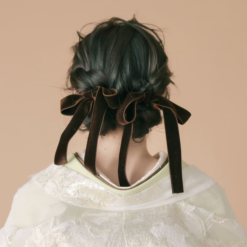 髪型は流行りのツインお団子に、ブラウンのベロアリボン🎀