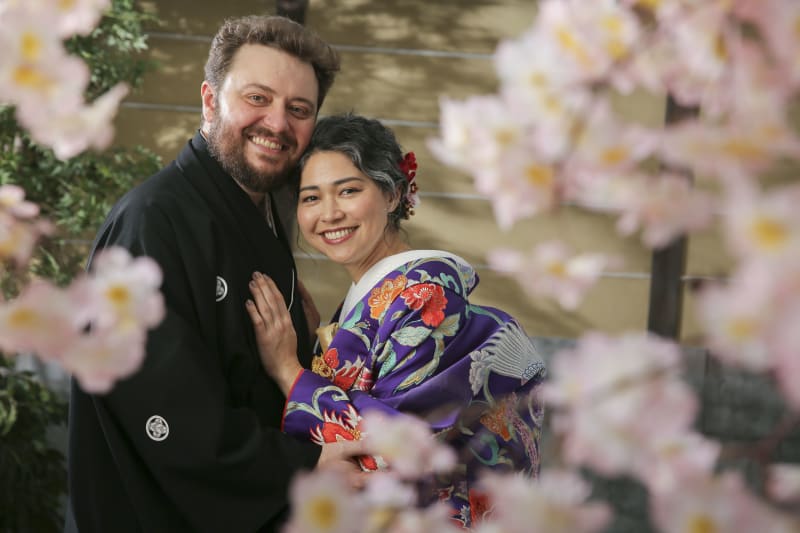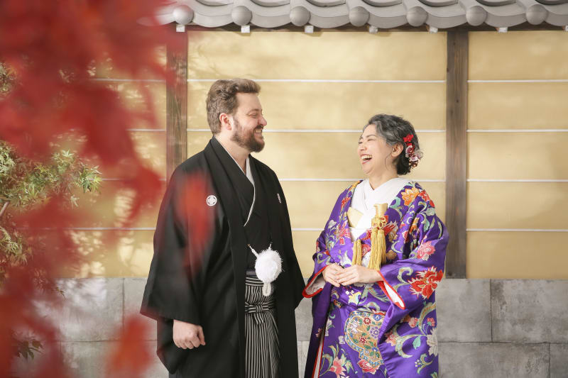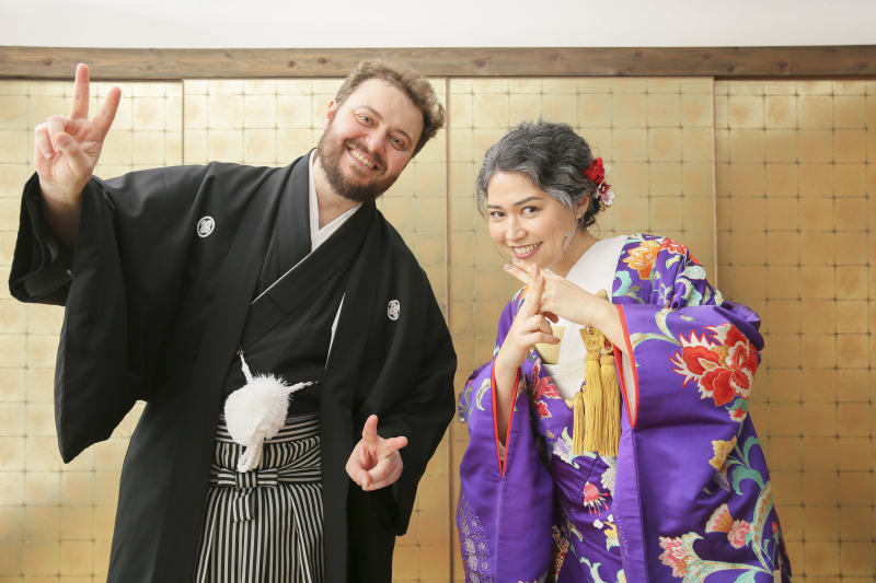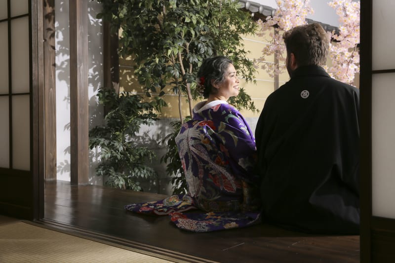 新宿店の本格的な茶室スタジオで撮影する、和装の結婚写真