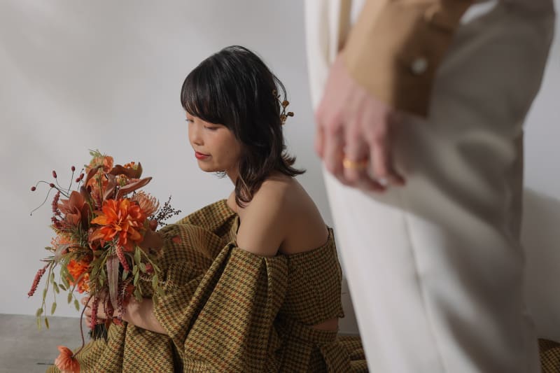 一面お花の壁が登場!新宿店ハウススタジオで撮影する洋装ウェディングフォトプラン
