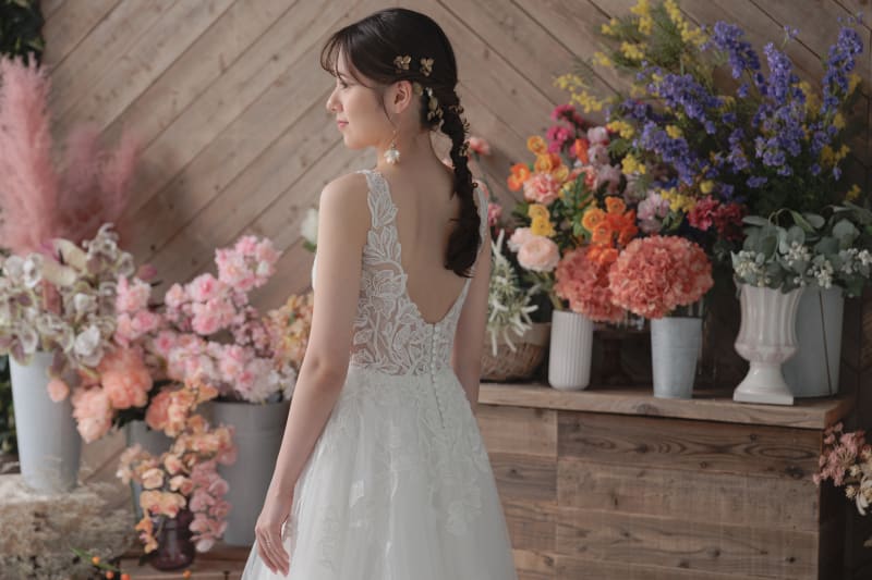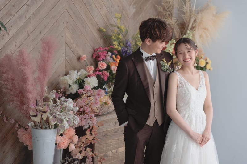 一面お花の壁が登場!新宿店ハウススタジオで撮影する洋装ウェディングフォトプラン