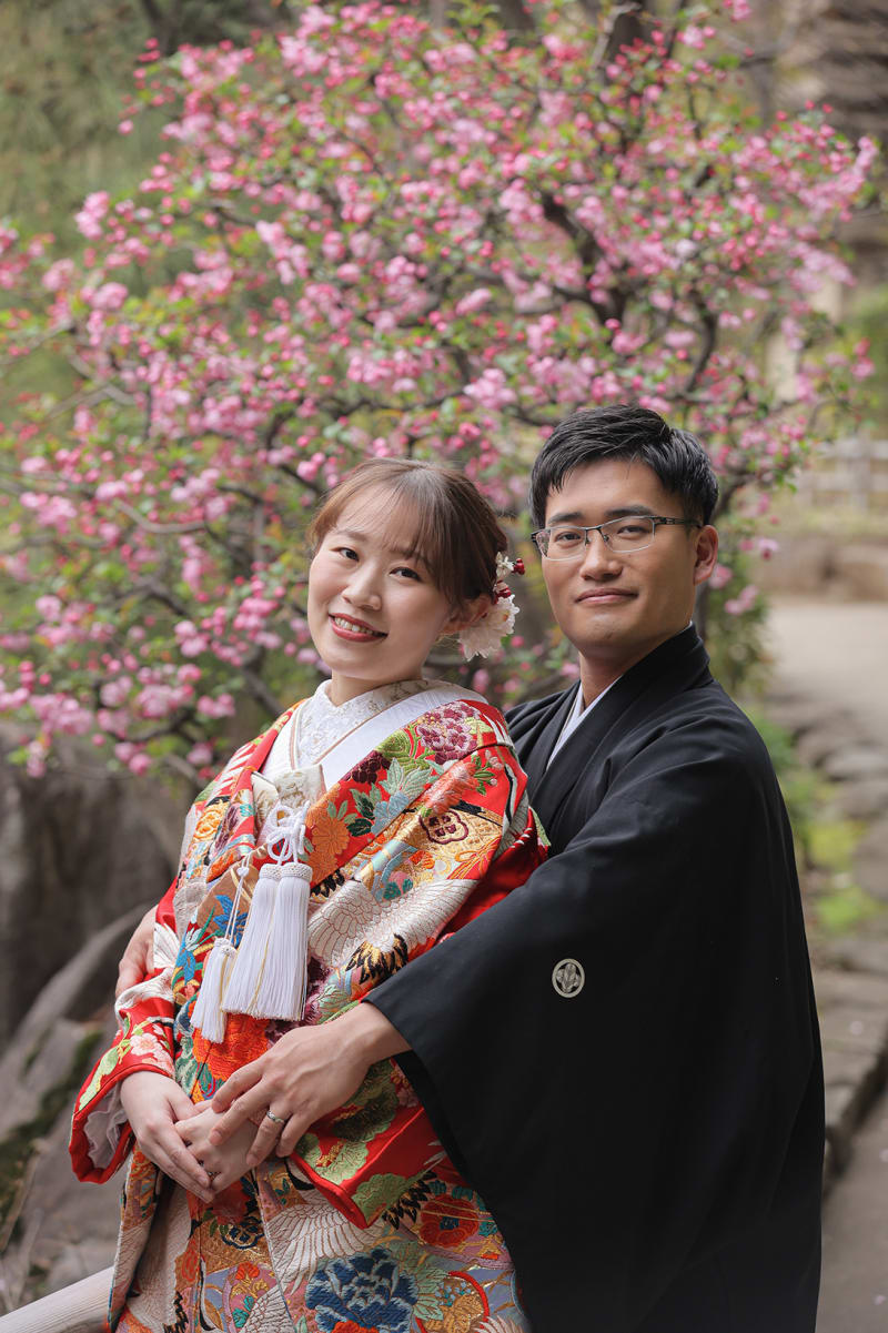 新宿店の本格的な茶室スタジオで撮影する、和装の結婚写真