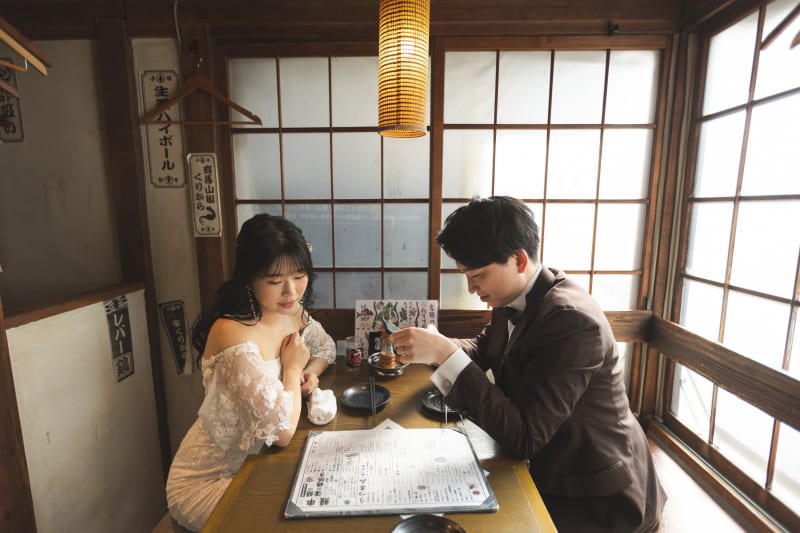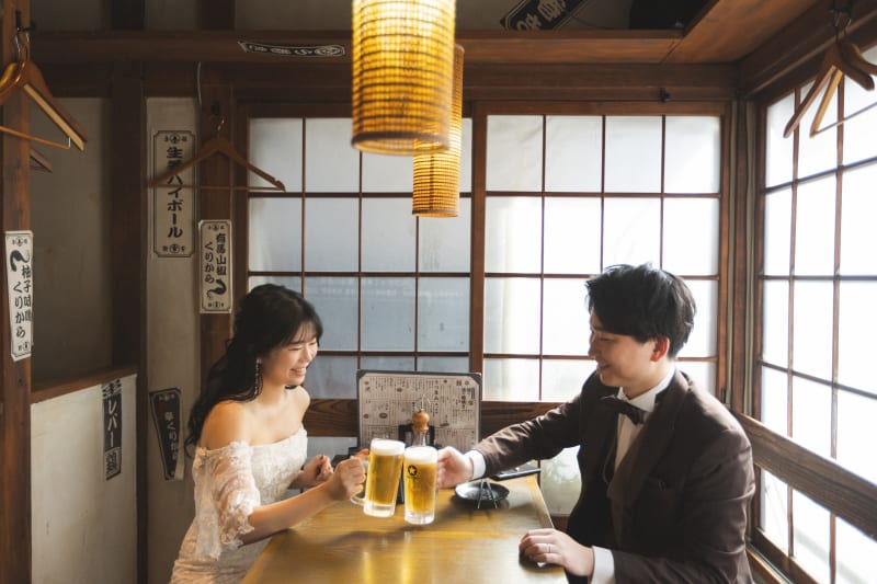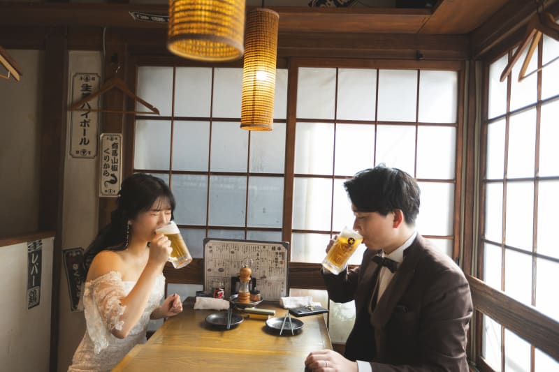 こんにちは!ヘアメイクの大森です 今回はお二人が初デートで行った居酒屋さんで撮影をしてきましたのでご紹介です!