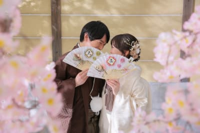 お持ち込みの扇子です。桜とお二人のお茶目な表情で可愛いショットとなりました!