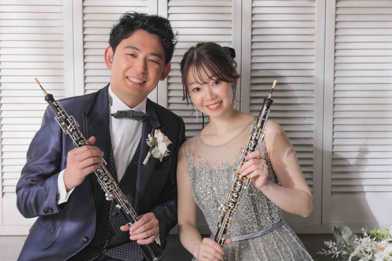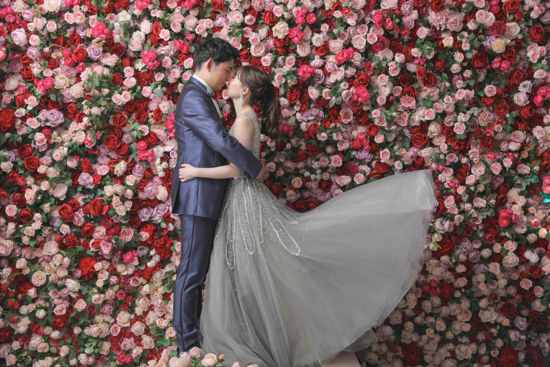 鮮やかなお花をバックにお二人がとてもロマンチックですね♡