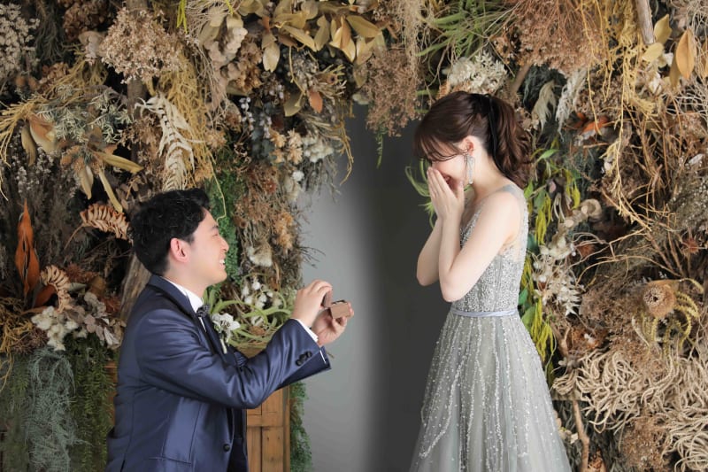 指輪を渡すシーンを再現!ドライフラワーがおしゃれですね