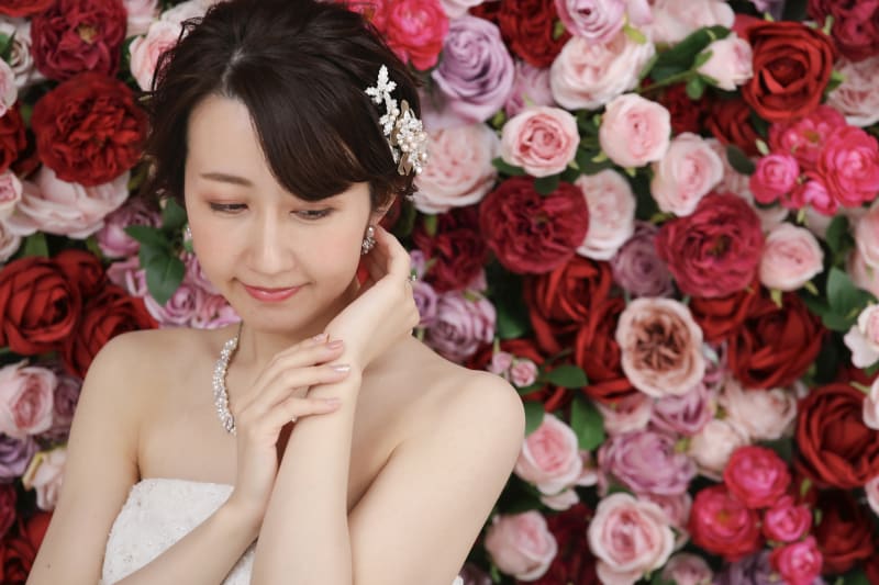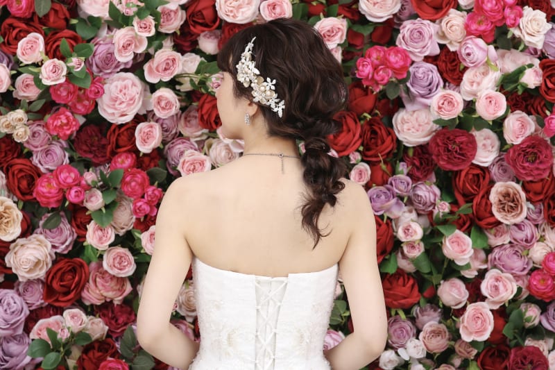 一面お花の壁が登場!新宿店ハウススタジオで撮影する洋装ウェディングフォトプラン