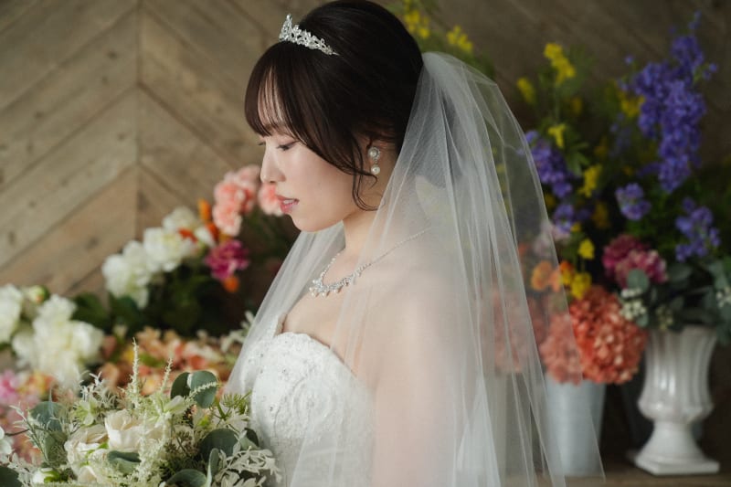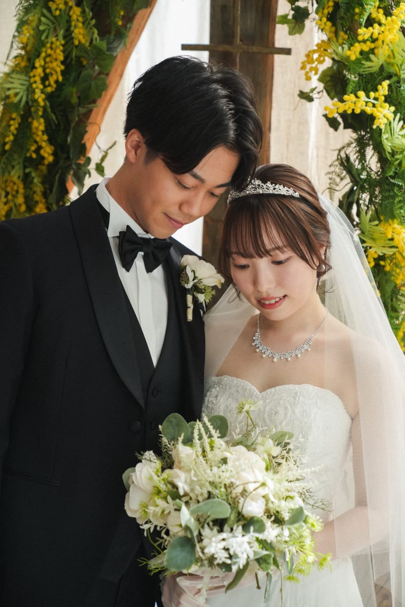 一面お花の壁が登場!新宿店ハウススタジオで撮影する洋装ウェディングフォトプラン
