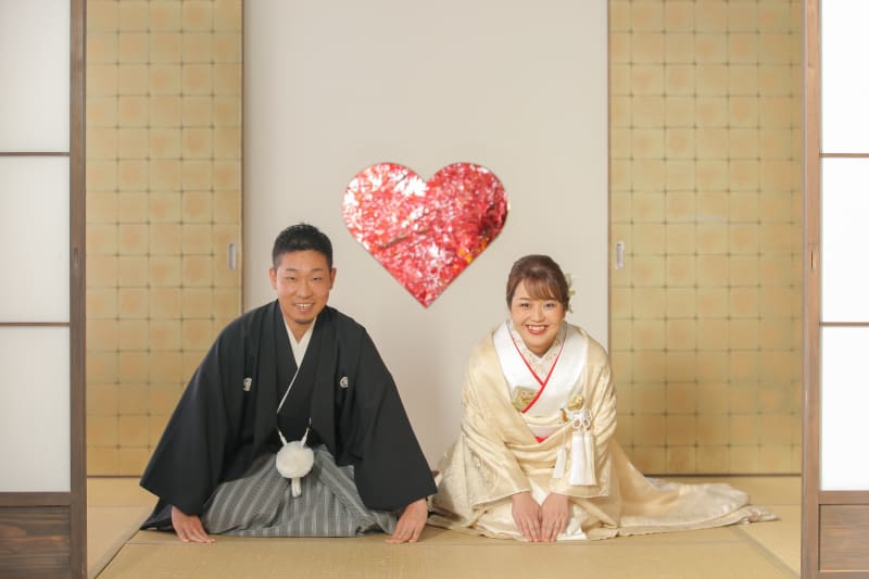 新宿店の本格的な茶室スタジオで撮影する、和装の結婚写真