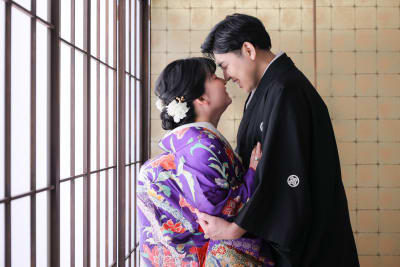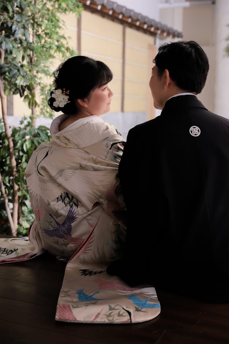 新宿店の本格的な茶室スタジオで撮影する、和装の結婚写真