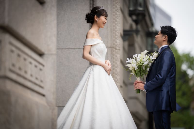 お選びいただいた王道なボリュームドレスがロケ地にとっても映えますね◎