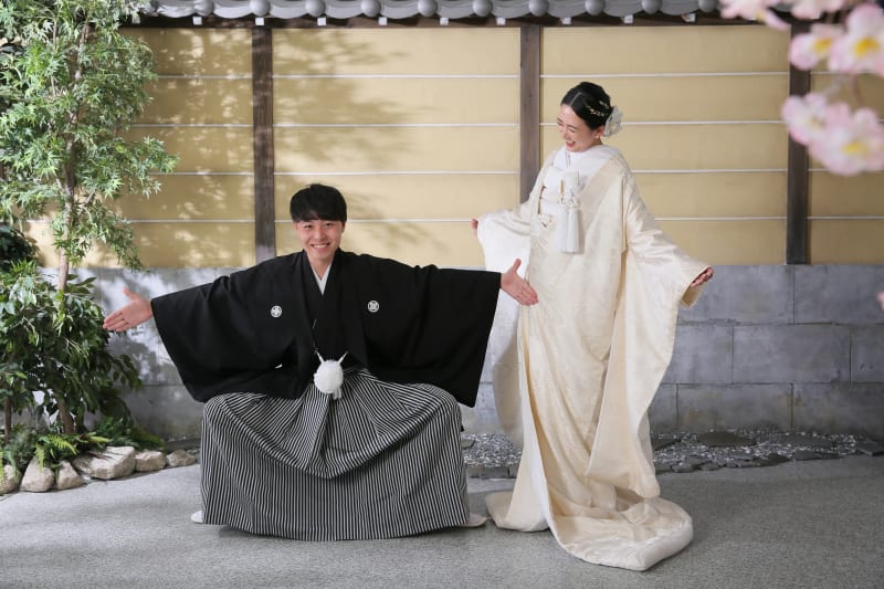 新宿店の本格的な茶室スタジオで撮影する、和装の結婚写真