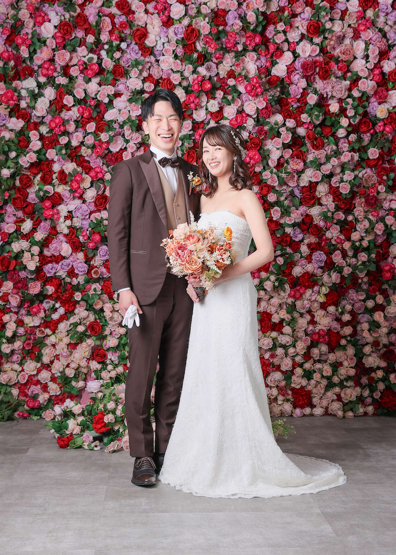 一面お花の壁が登場!新宿店ハウススタジオで撮影する洋装ウェディングフォトプラン
