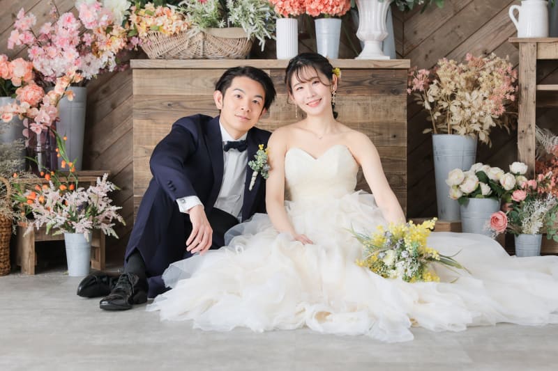 一面お花の壁が登場!新宿店ハウススタジオで撮影する洋装ウェディングフォトプラン