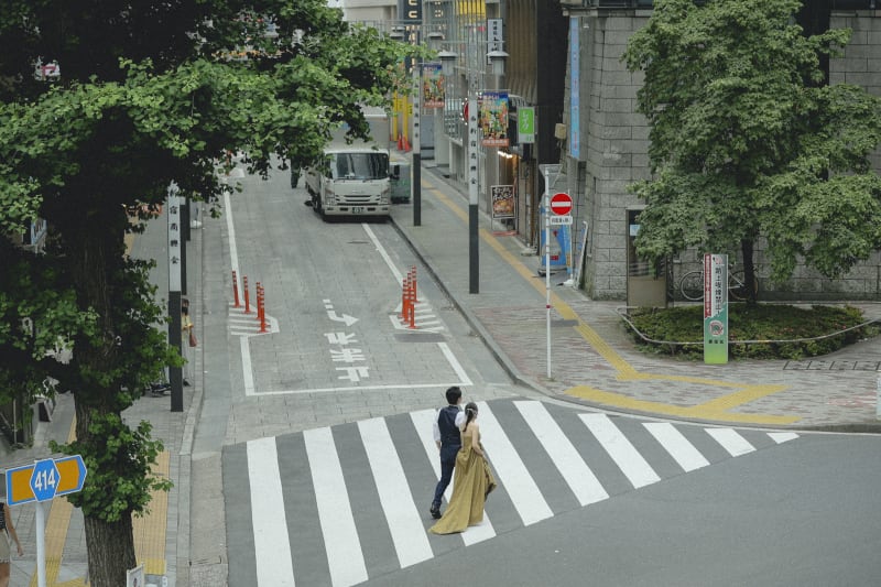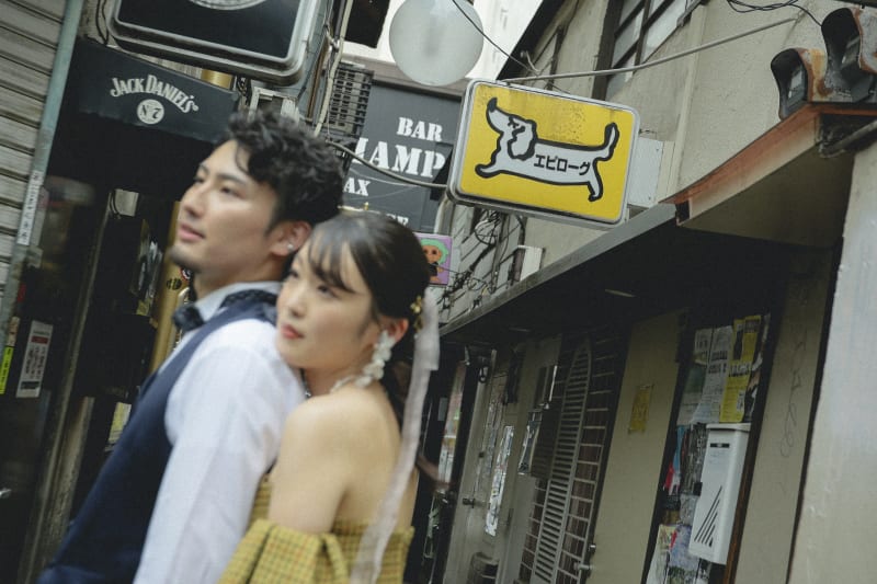 お二人の衣装がゴールデン街の街並みとマッチしていて素敵ですね!