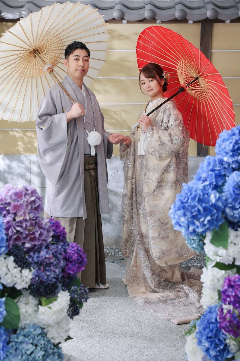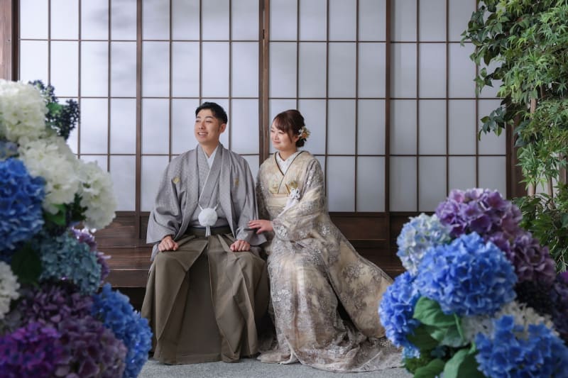 新宿店の本格的な茶室スタジオで撮影する、和装の結婚写真