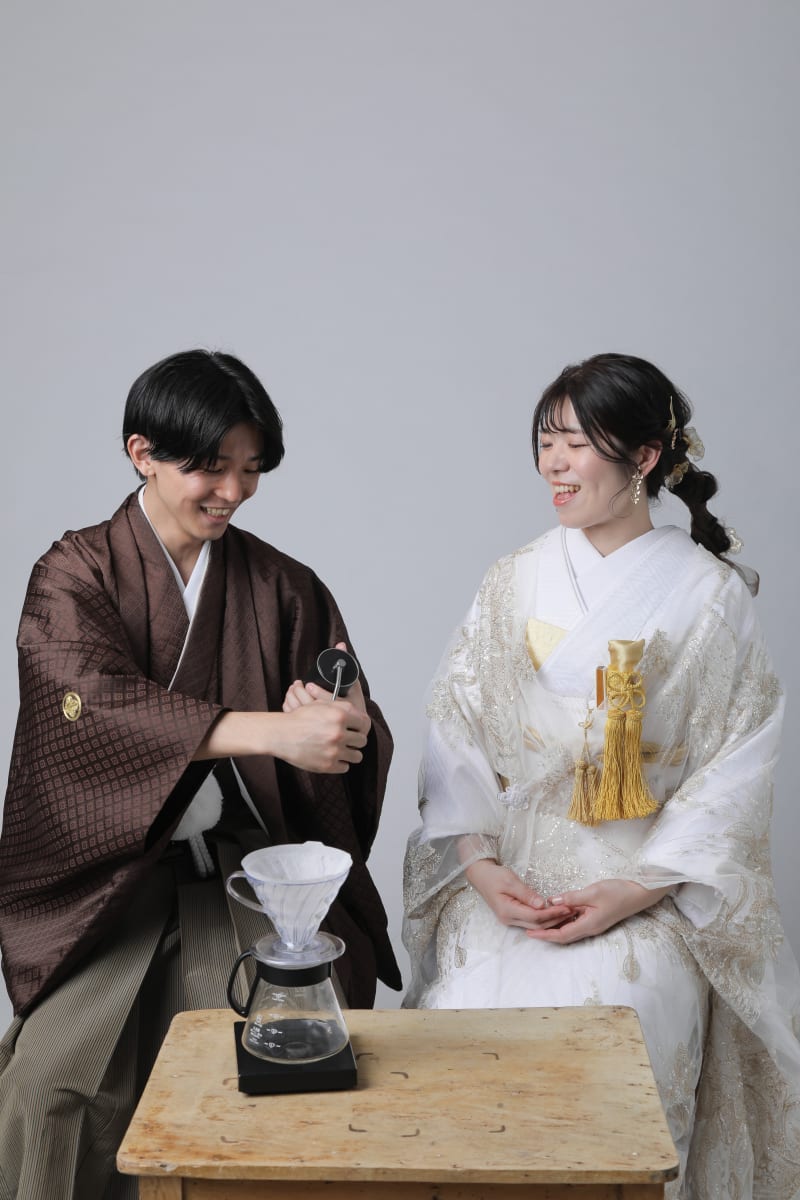 和装スタジオ PLUS+であれば、フォーマルなお写真からおふたりらしい瞬間まで幅広く撮影できます◎