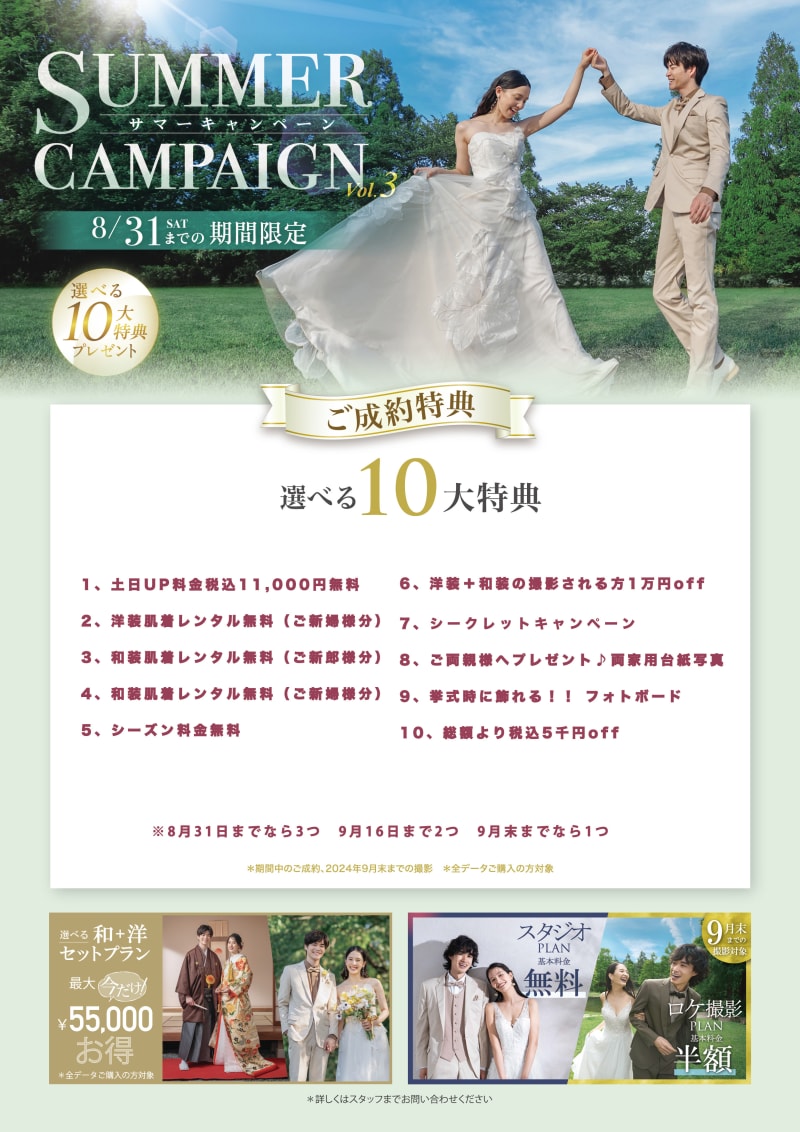2024年9月末までの撮影日で当日中にご成約・全データ購入されるみなさんに特典がつきます♪