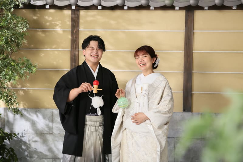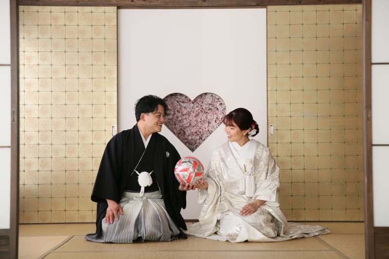 サッカーボールを使ってみたり、おふたりの好きなアイテムでおふたりらしさが出せちゃいます。