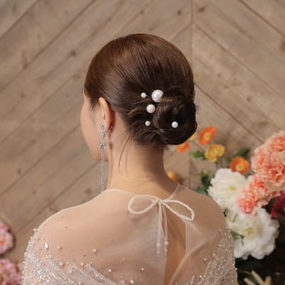 タイトなヘアスタイルと、パールピンの飾りで大人っぽくチェンジしてみました♡
