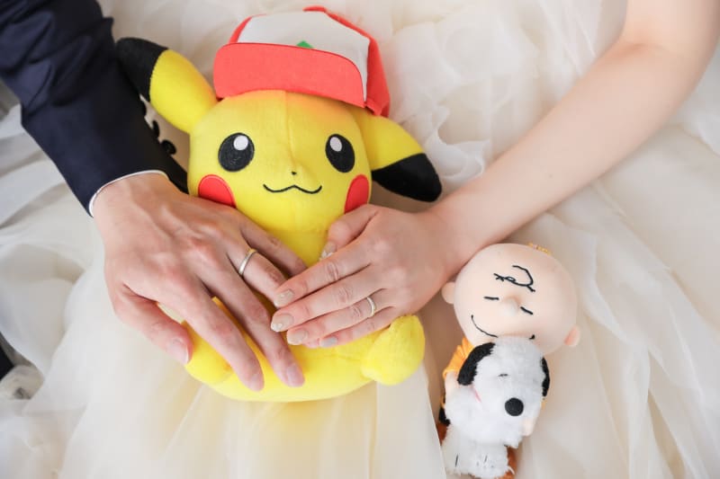 ご新郎さまはピカチュウを、ご新婦様はスヌーピーをお持ちいただいてます!!