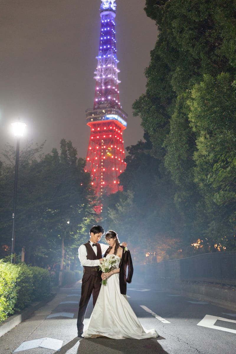 この美しい背景で撮影した写真は、二人のこれからの人生を共に歩んでいく姿をしっかりと記録してくれました。お二人の素敵な笑顔と東京タワーが見事に融け合い、まるで掌の中に幸せを収めたかのようです。