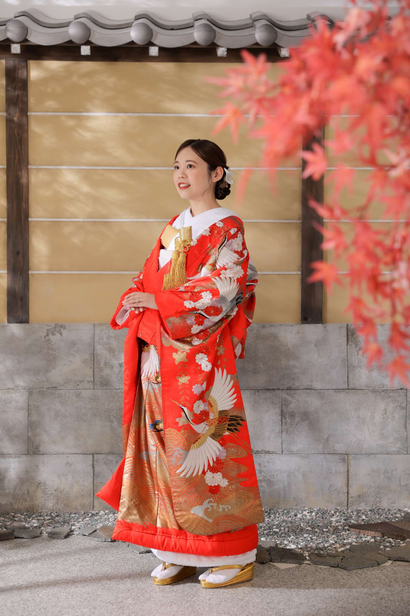 また、屋内庭園スタジオであればロケーション撮影のように紅葉と一緒に撮影が可能です。