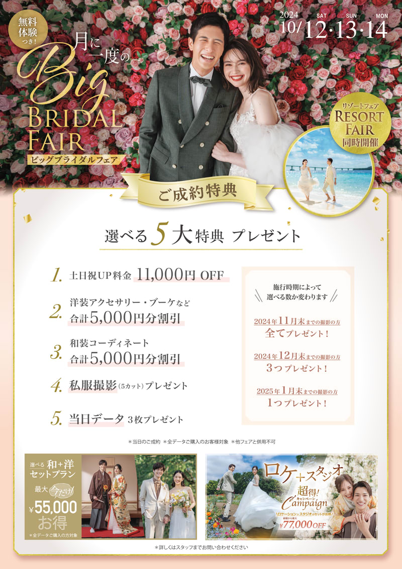 10/12・10/13・10/14限定!月に一度の『ビッグブライダルフェア』開催のお知らせ!!