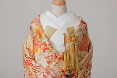 色打掛は筥迫、懐剣、帯締めが金の無地のものになります。
