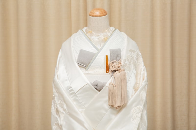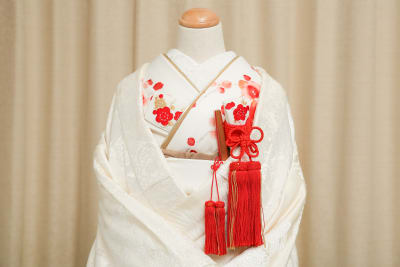 通常白無垢では掛下や小物全て白の無地のものがつき、
