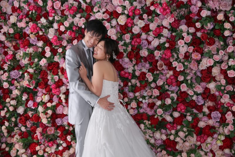 新宿店のバラ背景はピンクや赤といった華やかな色味です!