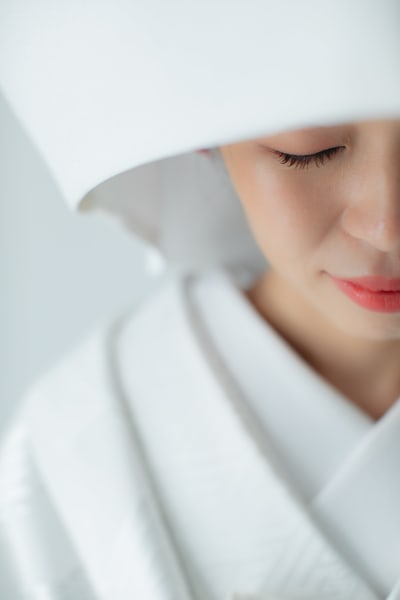 綿帽子には、挙式まで新郎以外の人に顔を見せないという意味が込められております。