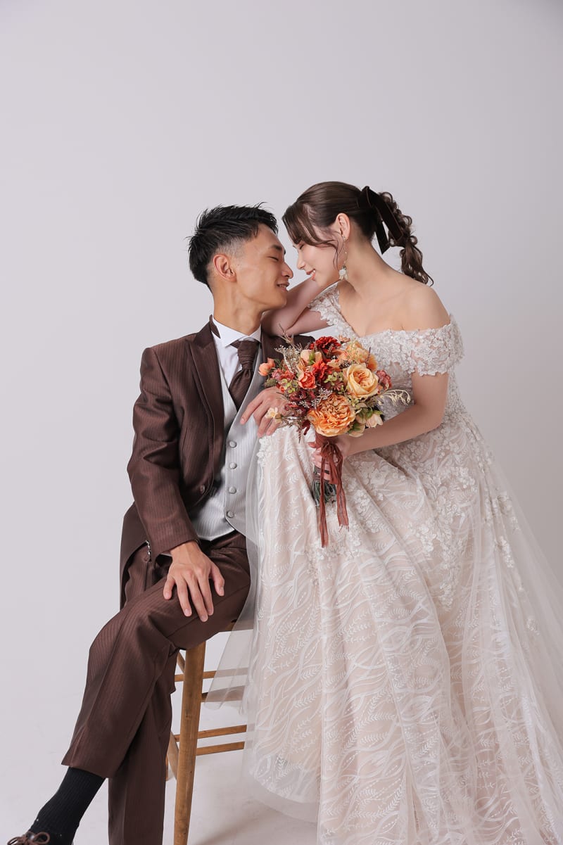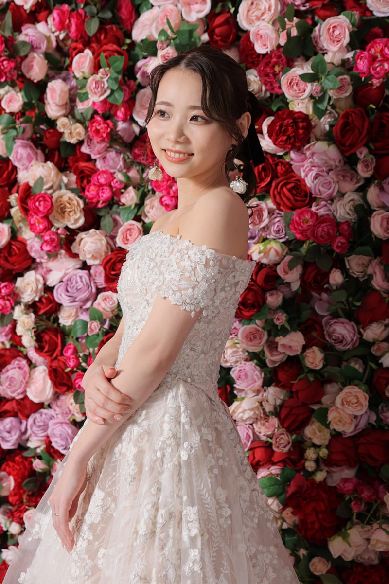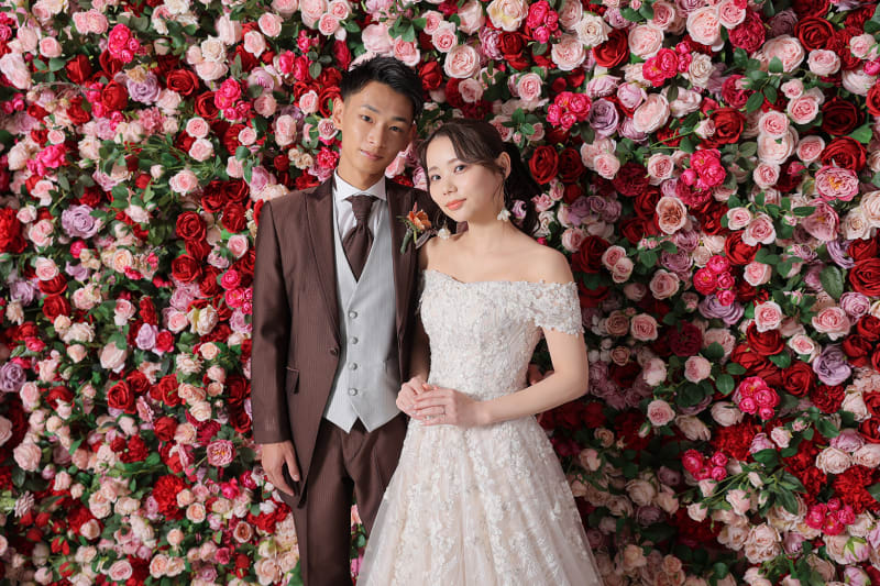 一面お花の壁が登場!新宿店ハウススタジオで撮影する洋装ウェディングフォトプラン