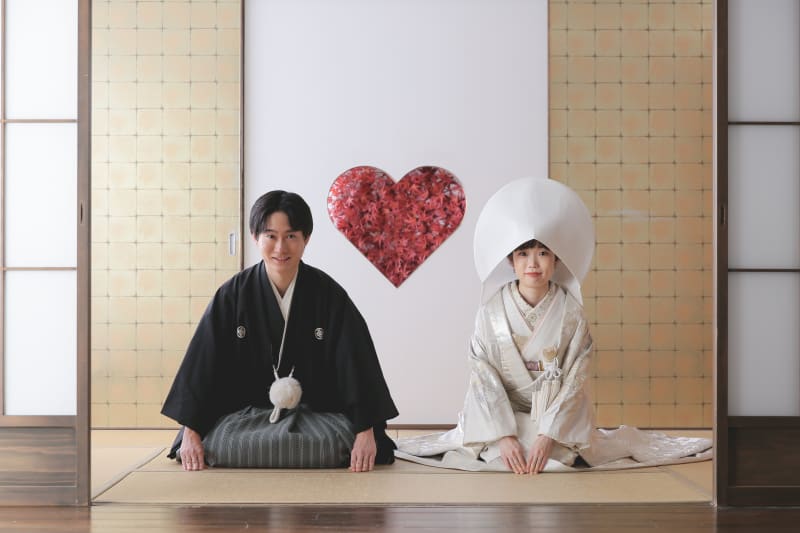 新宿店の本格的な茶室スタジオで撮影する、和装の結婚写真