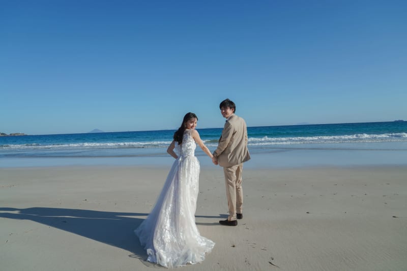 爽やかな伊豆の青い海をバックのお写真も叶えられます◎