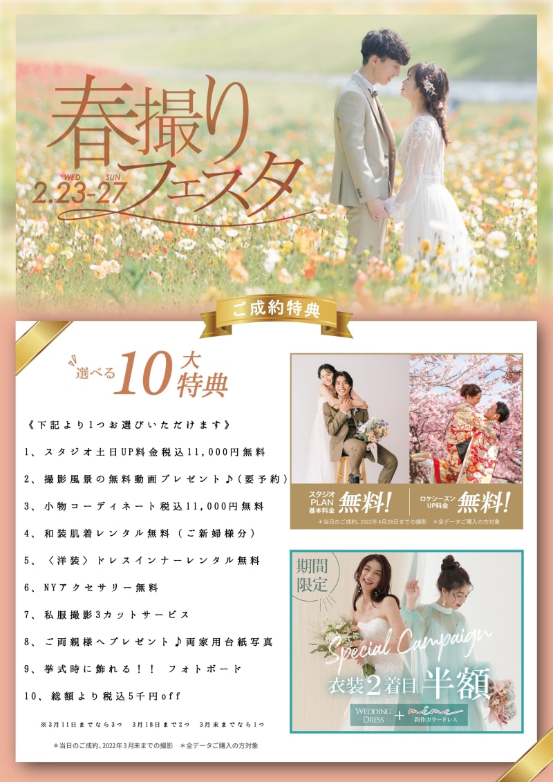 一面お花の壁が登場!新宿店ハウススタジオで撮影する洋装ウェディングフォトプラン