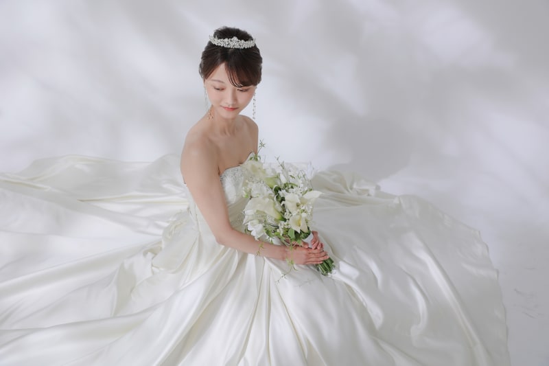 新婦様のドレスの長さを生かした、こちらの座りショットに憧れる新婦様も多いはず!