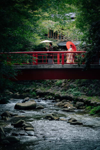 河津は、2月になると河津桜が満開になり、まさに春の訪れを感じることができる場所です。この時期限定で店舗を構えているため、一年の中でも特に美しい瞬間を逃すことなく撮影が可能です!桜や菜の花の美しい景色はもちろん、実は和装が映える神社や静かな竹林もあり、多彩なシーンを楽しむことができます。